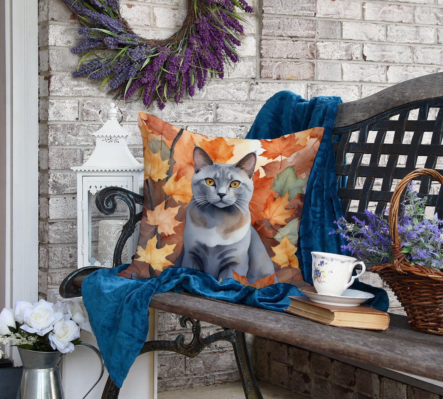 Throw Pillow featuring breed specific Korat artwork. Celebrate Halloween with this Halloween Pillow. Revitalize your outdoor or indoor living space with Caroline's Treasures 18x18 Fabric Decorative Pillow. With a generously sized dimension of approximately 18 inches by 18 inches, this pillow makes a comfortable and aesthetic addition to any seating area. Made from a unique, water-resistant material developed by Caroline's Treasures, the pillow sham is 100% polyester fabric that's durable and ready to weather any condition. Its vibrant, full-color artwork will not fade over time as it is dyed with color-fast dyes. Whether you place it on your patio furniture, porch, veranda, or indoor couch, its soft canvas fabric ensures a cozy experience. The pillow is handcrafted in the United States, featuring a sham created from three pieces of fabric and a polyester insert for enduring shape and overstuffed comfort. Despite being robustly built to endure the outdoors, it is as soft and snug as your favorite indoor cushions. Please note, as all our pillows are handmade, sizes may vary slightly, adding to the charm of this unique decorative item.