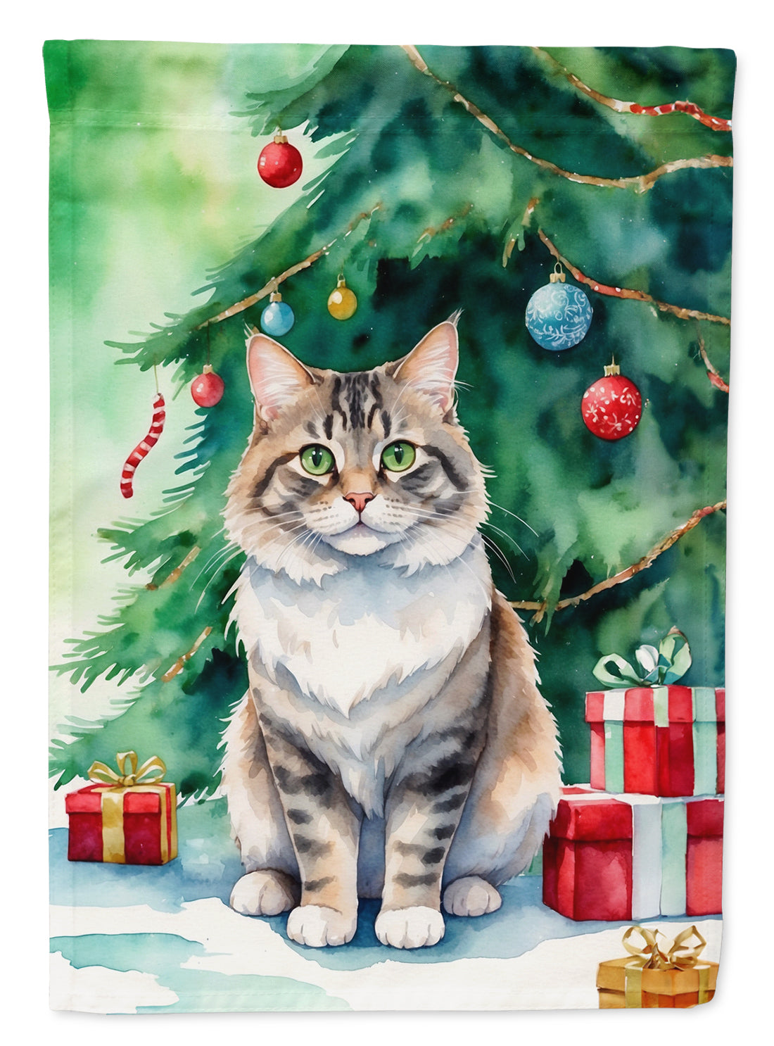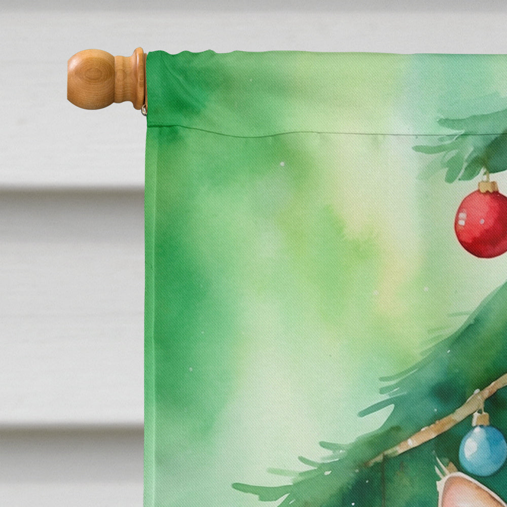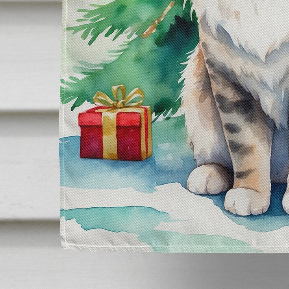 Kurilian Bobtail Cat By the Christmas Tree House Flag