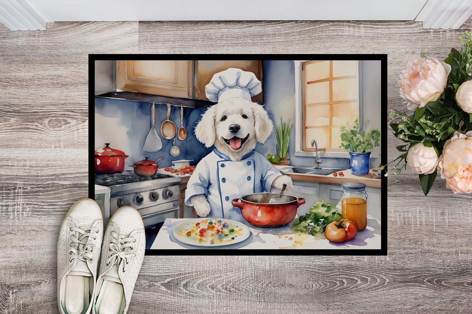 Doormat featuring breed specific Kuvasz artwork. Welcome your guests in style with our Artwork Door Mat, designed to withstand almost any weather condition. This mat, measuring approximately 18 by 27 inches, is held together by durable black binding tape. Its top layer, composed of polyester felt, is dyed with the eye-catching image you see on the mat. A few layers below provide the mat with stability, while its rubber bottom is stamped to help prevent slipping and ensures safety. Our mat works wonderfully as both an indoor or outdoor door mat. For cleaning, simply hose it off with water or use a power washer - no need for any cleaner that produces suds. Avoid scrubbing with a brush, instead, opt for the vacuum on floor setting. Designed manufactured and printed in the USA, this mat is a perfect addition to your porch, outdoor kitchen, entryway, or any indoor space. Its unique design makes it a charming decorative rug that greets your guests and adds a stylish touch to your home decor.