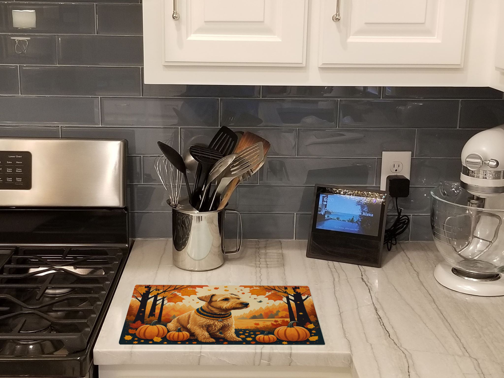 Glass Cutting Board featuring breed specific Lakeland Terrier artwork. Introduce your kitchen to the vibrant, large Decorative Glass Cutting Board from Caroline's Treasures. Crafted from resilient tempered glass, this board is not only a utilitarian necessity but also a colorful art piece. With its generous dimensions of 15 inches in height and 12 inches in length, it offers ample space for all your cutting needs. Every piece showcases captivating artwork from distinguished artists, bringing an aesthetic edge to your kitchen. Beyond its attractive design, this cutting board ensures your countertop stays pristine and unscathed, owing to its heat-resistant properties. Engineered with user convenience in mind, it features non-skid feet for stability, and rounded corners for additional safety. Its robust construction renders it virtually unbreakable, guaranteeing longevity. The board comes with protective feet bumpers, maintaining its position during use. This product is recommended to be hand washed only. Proudly printed and assembled in the United States, this cutting board exemplifies superior craftsmanship. With Caroline's Treasures' Decorative Glass Cutting Board, you're investing in a blend of functionality and artistic flair.