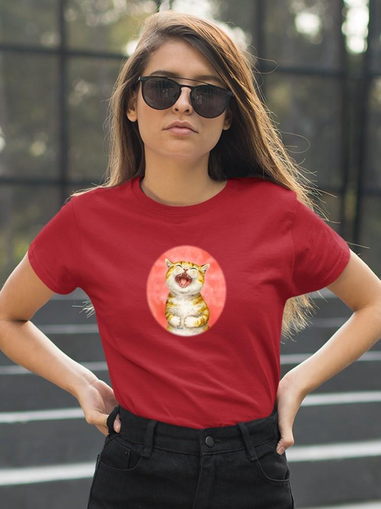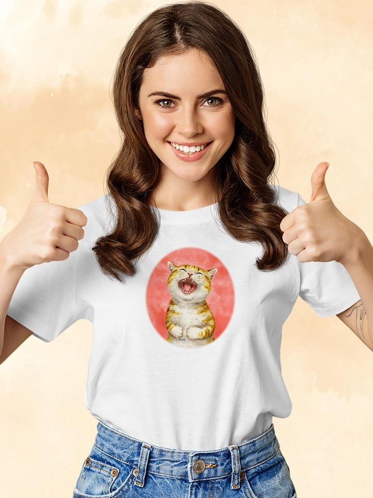 Laughing Cat T-shirt -Kayomi Harai Designs - T-shirt Female / White / S is backordered and will ship as soon as it is back in stock.