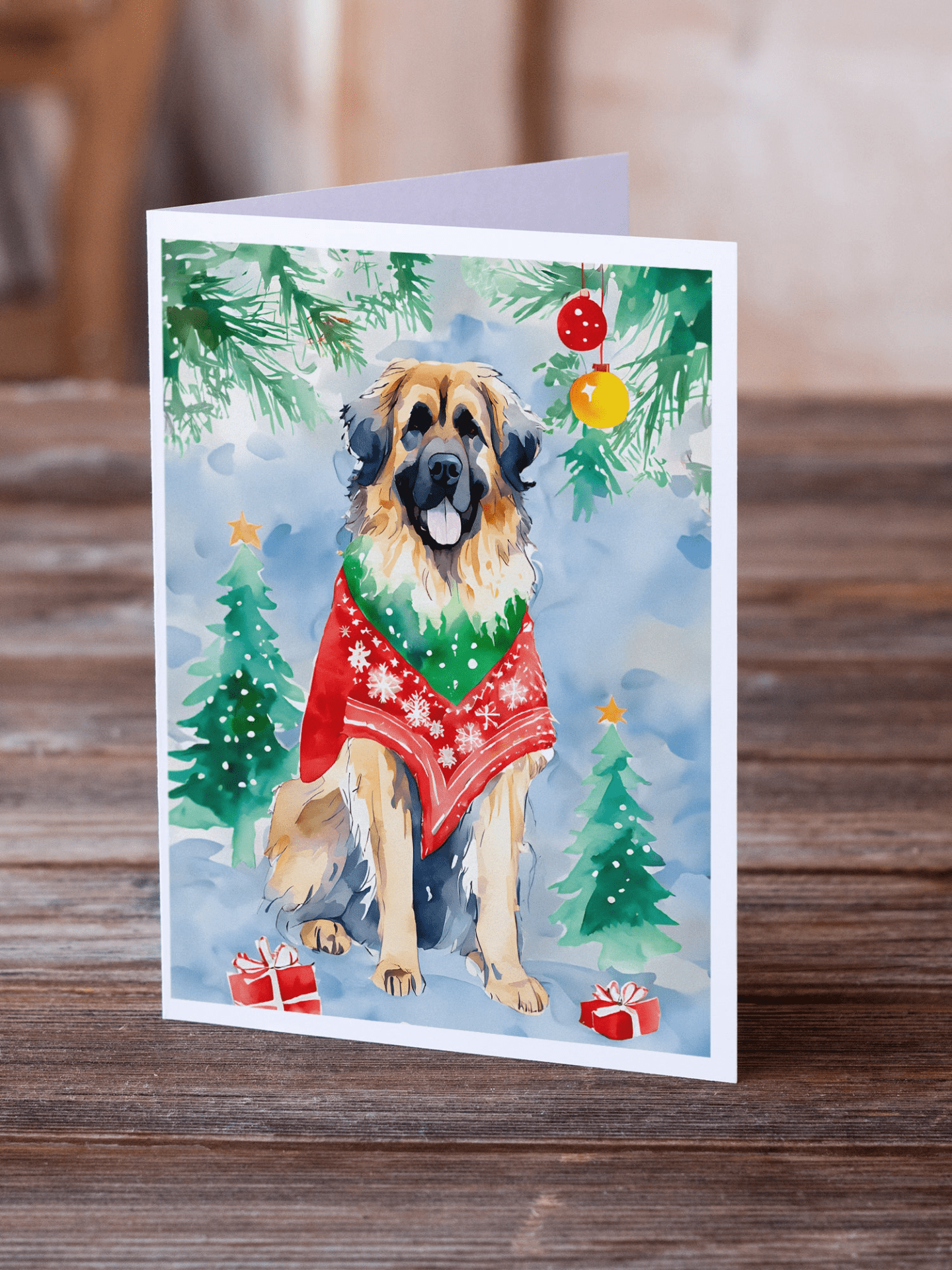 Celebrate the season with eight beautifully folded 5x7 cards featuring breed-specific Leonberger artwork. Each card arrives with a matching white envelope and a blank interior, inviting your personal, heartfelt holiday message. Printed on premium stock with a super-smooth finish, these cards offer a luxurious presentation that your loved ones will treasure.