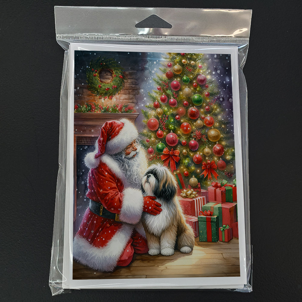Lhasa Apso and Santa Claus Greeting Cards Pack of 8