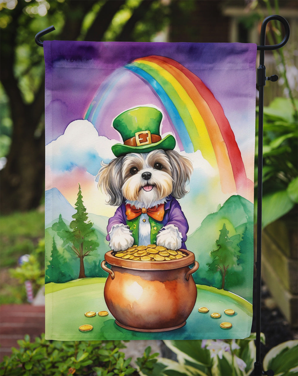 Garden Flag featuring breed specific Lhasa Apso artwork. Celebrate St Patrick's Day with this St Patrick's Day Garden Flag. Enhance the beauty of your garden, patio, or yard with Caroline's Treasures Decorative Garden Flag, proudly made in the USA. Crafted from two pieces of thick, double-sided polyester fabric, this 2-ply garden flag is designed to withstand various weather conditions, making it water-resistant and weatherproof. Featuring correctly readable words on both sides, this garden flag offers a delightful visual experience from any angle. With its heavier weight, it stands out among other garden flags, ensuring stability and durability even in wind, rain, and snow. Measuring approximately 11 1/4 inches by 15 1/2 inches, this flag allows you to personalize your outdoor decor. It comes with a 1 1/2-inch sleeve sewn in, allowing easy attachment to any standard garden flag stand or garden size porch hanger (sold separately). Make a statement in your outdoor space with Caroline's Treasures Decorative Garden Flag, a vibrant and high-quality flag that adds color and personality to your surroundings. Proudly made in the USA, it's a symbol of quality craftsmanship and attention to detail.