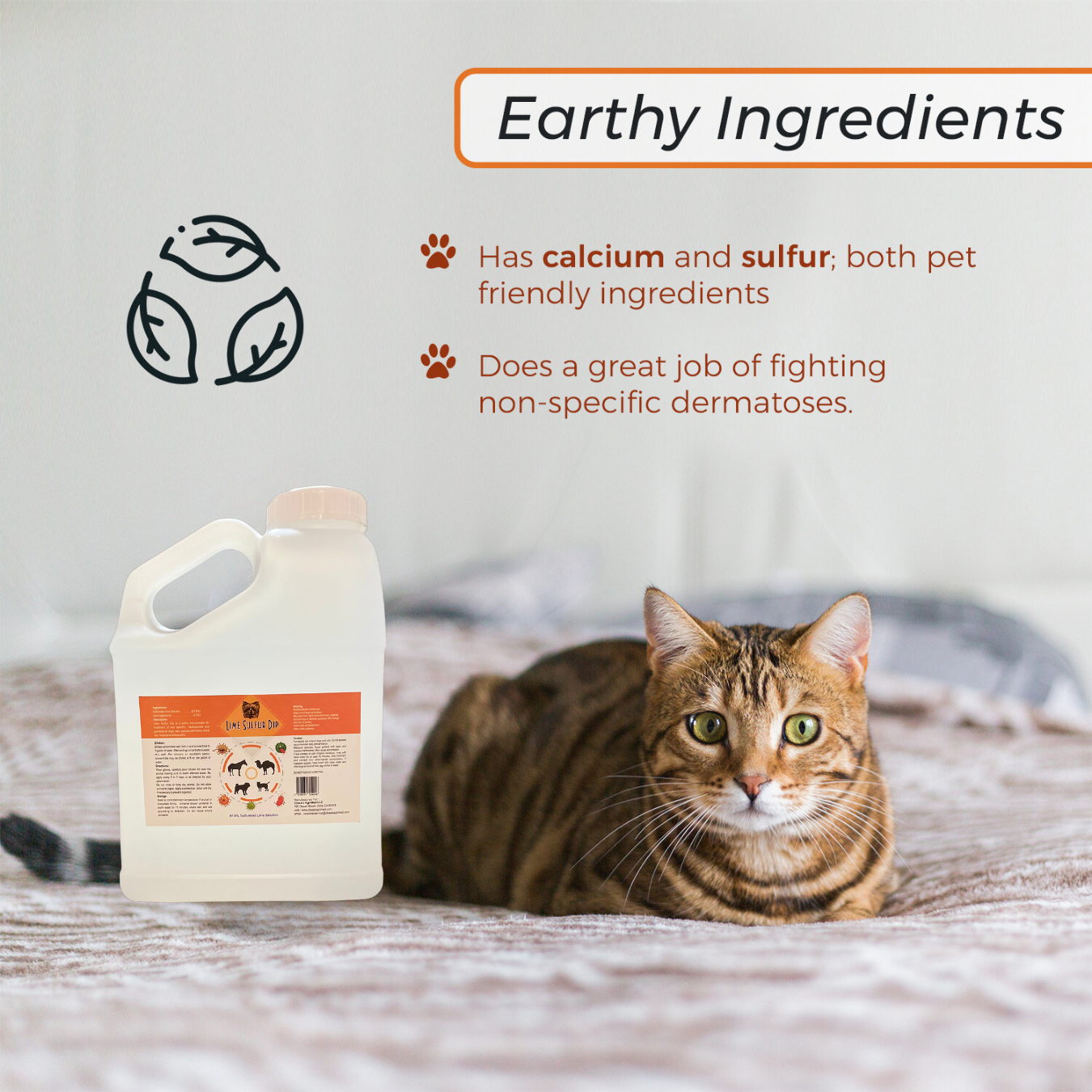 🐾 LIME SULFUR DIP - CALCIUM-SULFUR EARTHY INGREDIENTS - This professional vet formula has calcium and sulfur, both earthy ingredients that won’t cause any harm to your beloved pets. They’ve been used for decades to fight infections.