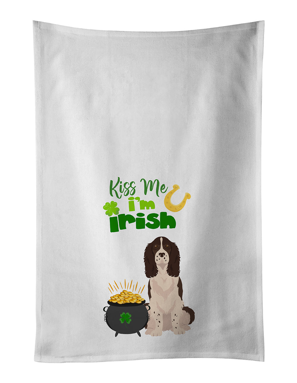 Kitchen Towel Set of 2 featuring breed specific English Springer Spaniel artwork. Celebrate St Patrick's Day with this St Patrick's Day Kitchen Cotton Towels. This Kitchen Towel Set of 2 is from Caroline's Treasures collection Kiss me I'm Irish. Spruce up your kitchen decor with Caroline's Treasures Decorative White Kitchen Towel Set. This set of two dish towels showcases beautiful artwork from one of our talented artists, making them both practical and visually appealing. These towels are crafted from 100% cotton, offering excellent absorbency and durability, making them ideal for any kitchen task. Each white towel measures 19 inches by 28 inches, providing ample coverage for drying dishes or wiping up spills. The standout feature of these towels is the full-color artwork design printed on each one. They can serve as a vibrant accent in your kitchen, turning a functional item into a delightful piece of decor. When it comes to care, these towels are machine washable in cold water and can be dried on low heat. Remember to always use a pressing cloth when pressing the design, and avoid using bleach on the decorated towel. The Decorative White Kitchen Towel Set makes a great gift or a stylish addition to your own kitchen. This Kitchen Cotton Towels is from Caroline's Treasures Dogs category of products.