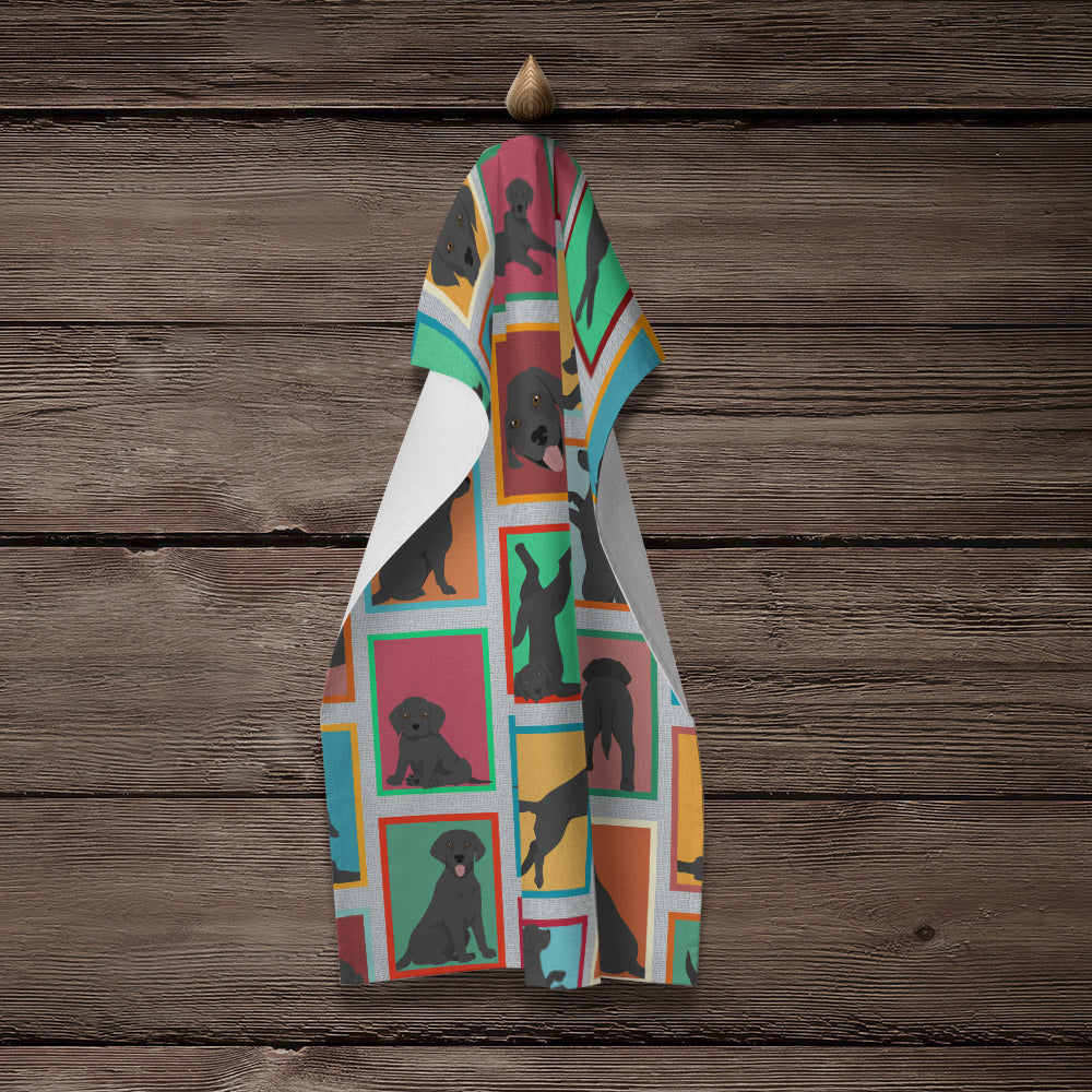 Kitchen Towel featuring breed specific Labrador Retriever artwork. Experience the perfect blend of aesthetic appeal and functional excellence with our Plush Velour Kitchen Towels. These are not your ordinary decorative kitchen towels that gather dust. Instead, they are designed to be as practical as they are stylish. The front layer of our towel is constructed from a minky plush polyester, known for its durability and color retention. Unlike conventional kitchen towels, the artwork on our towels is dyed directly into the fabric, ensuring vibrant colors that last. Polish your glassware to a brilliant sparkle using the plush front side of the towel. Flip to the back, crafted from 100% cotton terry loop, to exploit its exceptional absorbency for drying dishes or wiping down counters. Our kitchen towels redefine the concept of functional art, offering lasting quality that maintains the towel's shape over time. Measuring 15 inches by 25 inches and weighing 2.3 lbs per dozen, these towels deliver an overwhelming sensory experience with their soft, plush, and smooth texture. The edges are meticulously finished with binding, enhancing their durability and visual appeal. For your convenience, these towels are machine washable and can be dried on low heat. After the first wash, the top fabric becomes even softer and fluffier, eliminating the need for ironing. Treat your kitchen to the luxury and functionality it deserves with our plush velour kitchen towels.