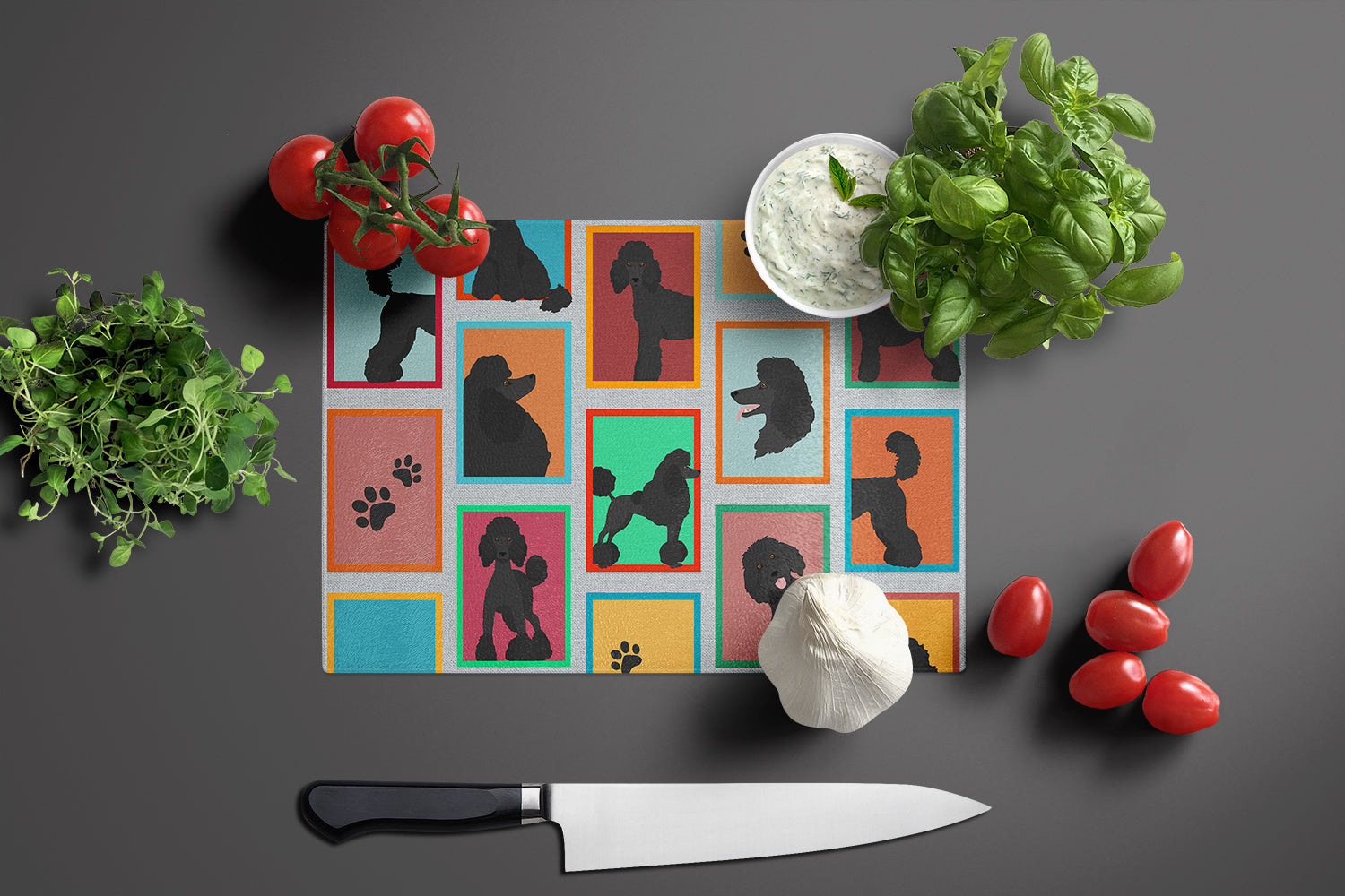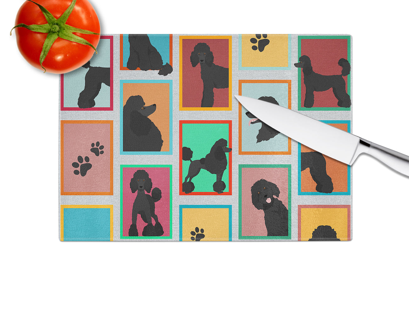 Glass Cutting Board featuring breed specific Poodle artwork. Introduce your kitchen to the vibrant, large Decorative Glass Cutting Board from Caroline's Treasures. Crafted from resilient tempered glass, this board is not only a utilitarian necessity but also a colorful art piece. With its generous dimensions of 15 inches in height and 12 inches in length, it offers ample space for all your cutting needs. Every piece showcases captivating artwork from distinguished artists, bringing an aesthetic edge to your kitchen. Beyond its attractive design, this cutting board ensures your countertop stays pristine and unscathed, owing to its heat-resistant properties. Engineered with user convenience in mind, it features non-skid feet for stability, and rounded corners for additional safety. Its robust construction renders it virtually unbreakable, guaranteeing longevity. The board comes with protective feet bumpers, maintaining its position during use. This product is recommended to be hand washed only. Proudly printed and assembled in the United States, this cutting board exemplifies superior craftsmanship. With Caroline's Treasures' Decorative Glass Cutting Board, you're investing in a blend of functionality and artistic flair.