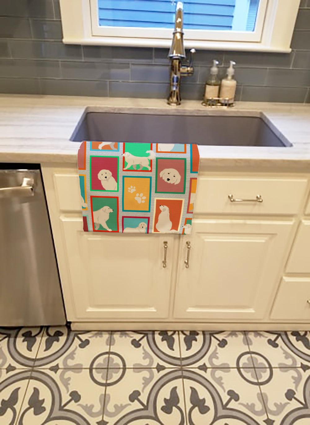 Kitchen Towel featuring breed specific Great Pyrenees artwork. Experience the perfect blend of aesthetic appeal and functional excellence with our Plush Velour Kitchen Towels. These are not your ordinary decorative kitchen towels that gather dust. Instead, they are designed to be as practical as they are stylish. The front layer of our towel is constructed from a minky plush polyester, known for its durability and color retention. Unlike conventional kitchen towels, the artwork on our towels is dyed directly into the fabric, ensuring vibrant colors that last. Polish your glassware to a brilliant sparkle using the plush front side of the towel. Flip to the back, crafted from 100% cotton terry loop, to exploit its exceptional absorbency for drying dishes or wiping down counters. Our kitchen towels redefine the concept of functional art, offering lasting quality that maintains the towel's shape over time. Measuring 15 inches by 25 inches and weighing 2.3 lbs per dozen, these towels deliver an overwhelming sensory experience with their soft, plush, and smooth texture. The edges are meticulously finished with binding, enhancing their durability and visual appeal. For your convenience, these towels are machine washable and can be dried on low heat. After the first wash, the top fabric becomes even softer and fluffier, eliminating the need for ironing. Treat your kitchen to the luxury and functionality it deserves with our plush velour kitchen towels.