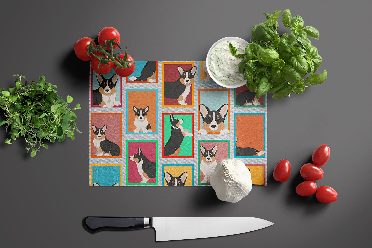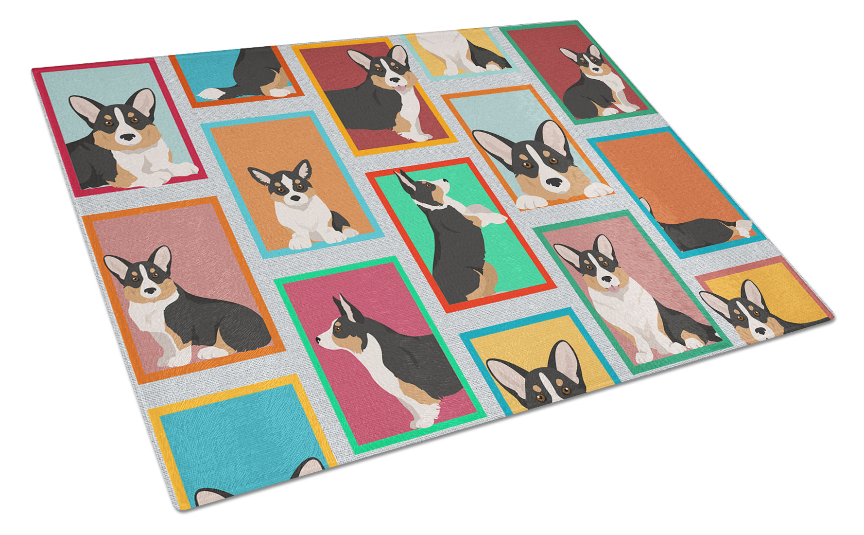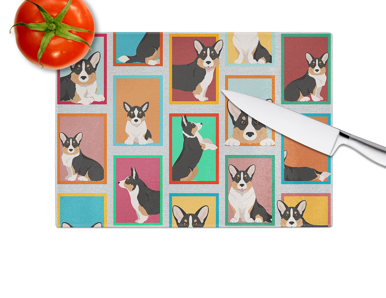 Lots of Tricolor Cardigan Corgi Glass Cutting Board