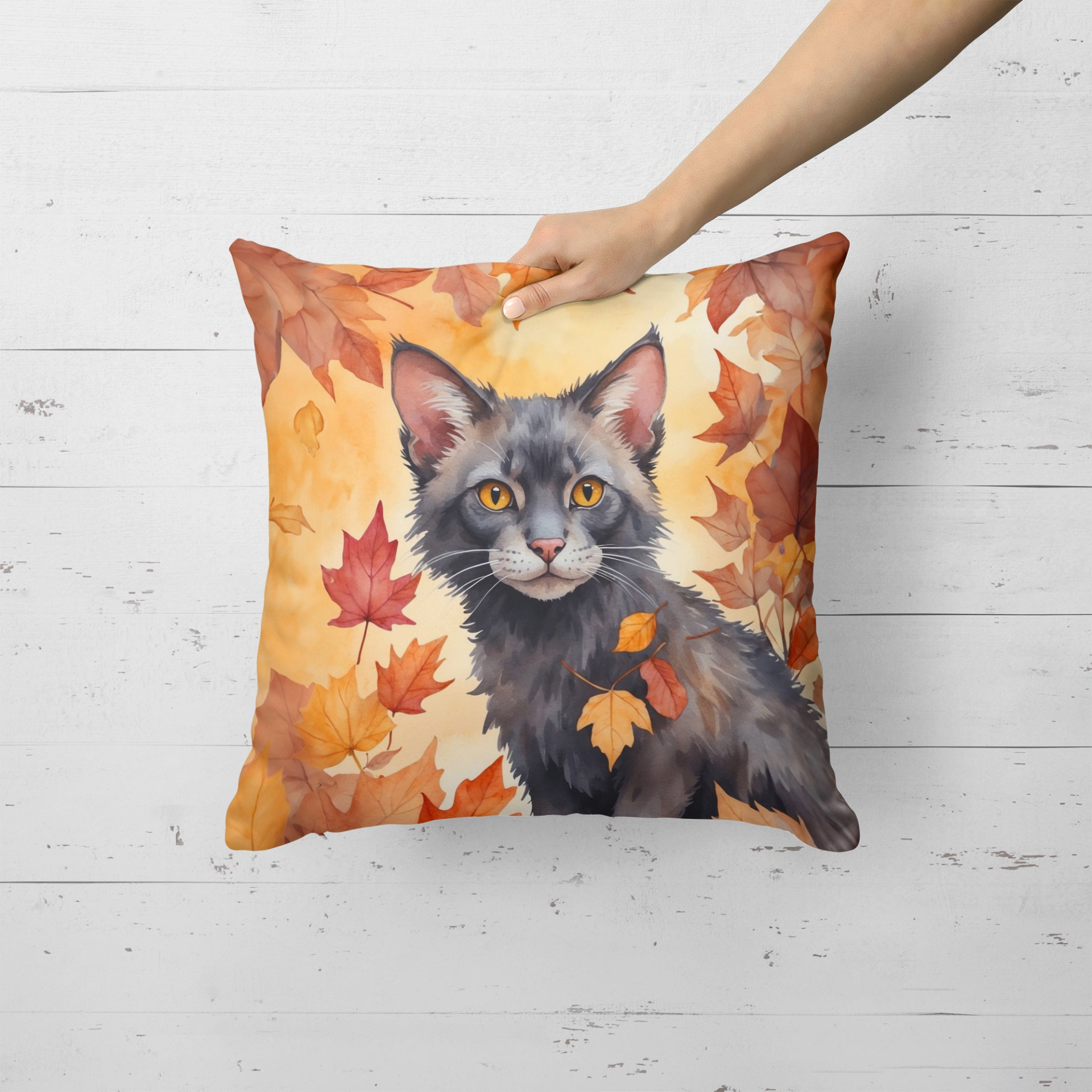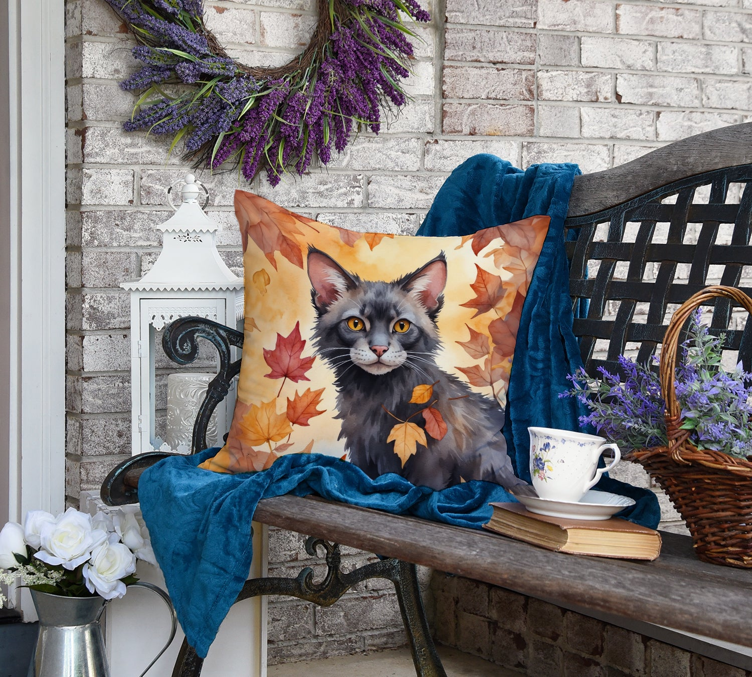 Throw Pillow featuring breed specific Lykoi artwork. Celebrate Halloween with this Halloween Pillow. Revitalize your outdoor or indoor living space with Caroline's Treasures 18x18 Fabric Decorative Pillow. With a generously sized dimension of approximately 18 inches by 18 inches, this pillow makes a comfortable and aesthetic addition to any seating area. Made from a unique, water-resistant material developed by Caroline's Treasures, the pillow sham is 100% polyester fabric that's durable and ready to weather any condition. Its vibrant, full-color artwork will not fade over time as it is dyed with color-fast dyes. Whether you place it on your patio furniture, porch, veranda, or indoor couch, its soft canvas fabric ensures a cozy experience. The pillow is handcrafted in the United States, featuring a sham created from three pieces of fabric and a polyester insert for enduring shape and overstuffed comfort. Despite being robustly built to endure the outdoors, it is as soft and snug as your favorite indoor cushions. Please note, as all our pillows are handmade, sizes may vary slightly, adding to the charm of this unique decorative item.