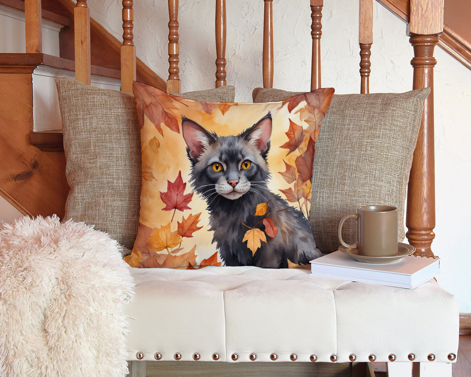 Throw Pillow featuring breed specific Lykoi artwork. Celebrate Halloween with this Halloween Pillow. Add a touch of vibrancy and comfort to your outdoor seating with Caroline's Treasures Fabric Decorative Pillow. Measuring approximately 14 inches by 14 inches, this outdoor pillow is crafted to elevate the appeal of your patio furniture, infusing it with vivid color and artistic flair. The pillow includes a 100% Polyester Fabric sham filled with a quality pillow form to provide superior comfort. Innovatively made from our brand new material, specifically woven for its water resistance, this pillow is designed for durability. The soft canvas fabric offers versatility in use, fit for your indoor couch or your outdoor patio, porch, or veranda. The fabric is dyed with colorfast dyes built for resilience against weather conditions, ensuring the pillow retains its beauty over time. Constructed by sewing three fabric pieces to create a sham, the polyester insert is then nestled inside to form the pillow, resulting in an overstuffed pillow that maintains its shape. Both the sham and the pillow insert are proudly made in the United States. As the pillows are handcrafted, there may be minor variations in size, further enhancing their unique charm. Experience comfort in style with Caroline's Treasures Fabric Decorative Pillow.