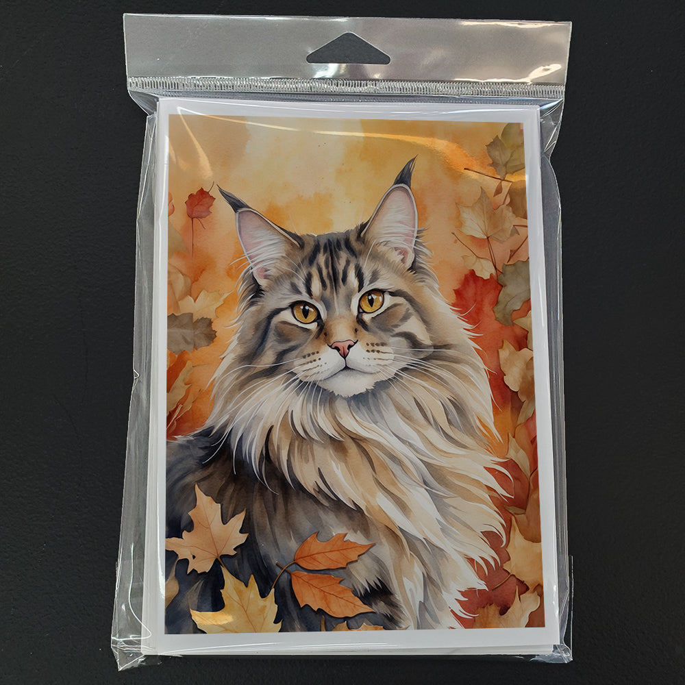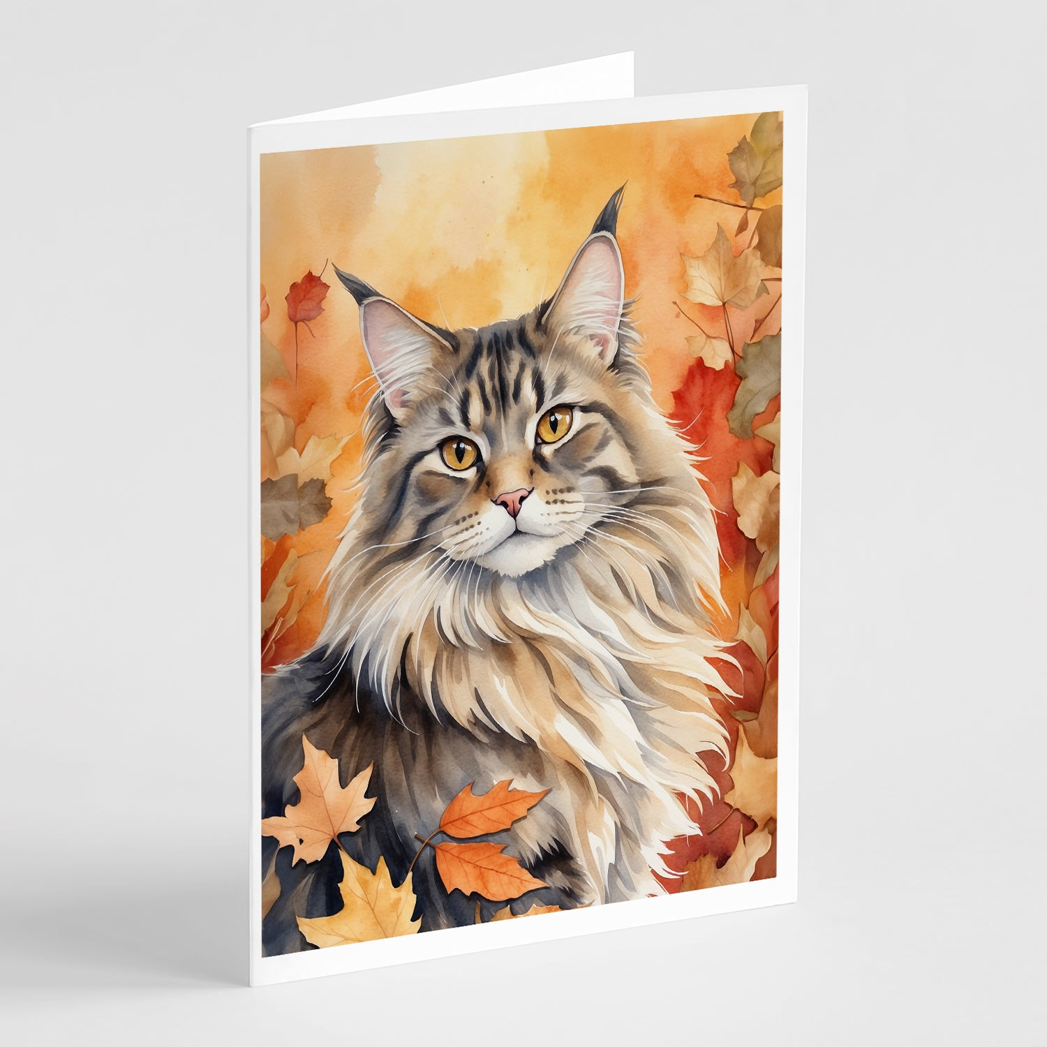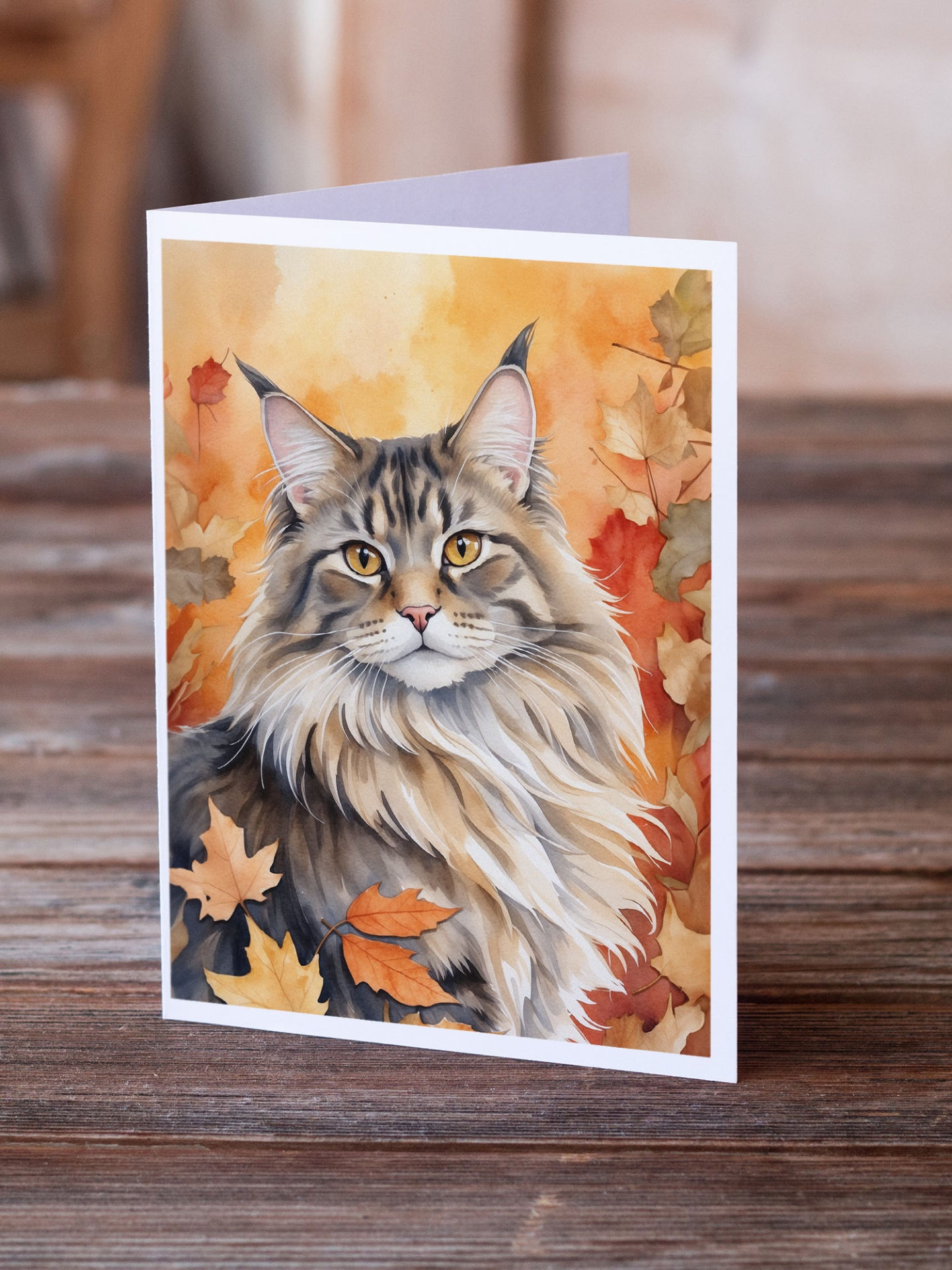 Greeting Cards Pack of 8 featuring breed specific MaineCoon artwork. Celebrate special moments with Caroline's Treasures Printed Greeting Card Pack. This pack includes eight beautifully folded 5x7 cards, accompanied by eight matching white envelopes. With blank interiors, these cards provide ample space for your personalized messages and heartfelt holiday greetings. Each card features captivating full-color artwork, meticulously printed in our facility on high-quality 80 lb cover stock or 216 GSM. The super smooth finish of the white cards enhances the visual impact of the artwork, creating a truly stunning presentation. Designed by our talented in-house artists or licensed artists, the artwork on these cards showcases their creativity and attention to detail. From vibrant illustrations to captivating designs, each card tells its own unique story. Whether it's for birthdays, anniversaries, holidays, or any special occasion, Caroline's Treasures Greeting Card Pack is the perfect way to convey your heartfelt sentiments. Share joy, love, and warm wishes with these exquisite cards and make every moment unforgettable.