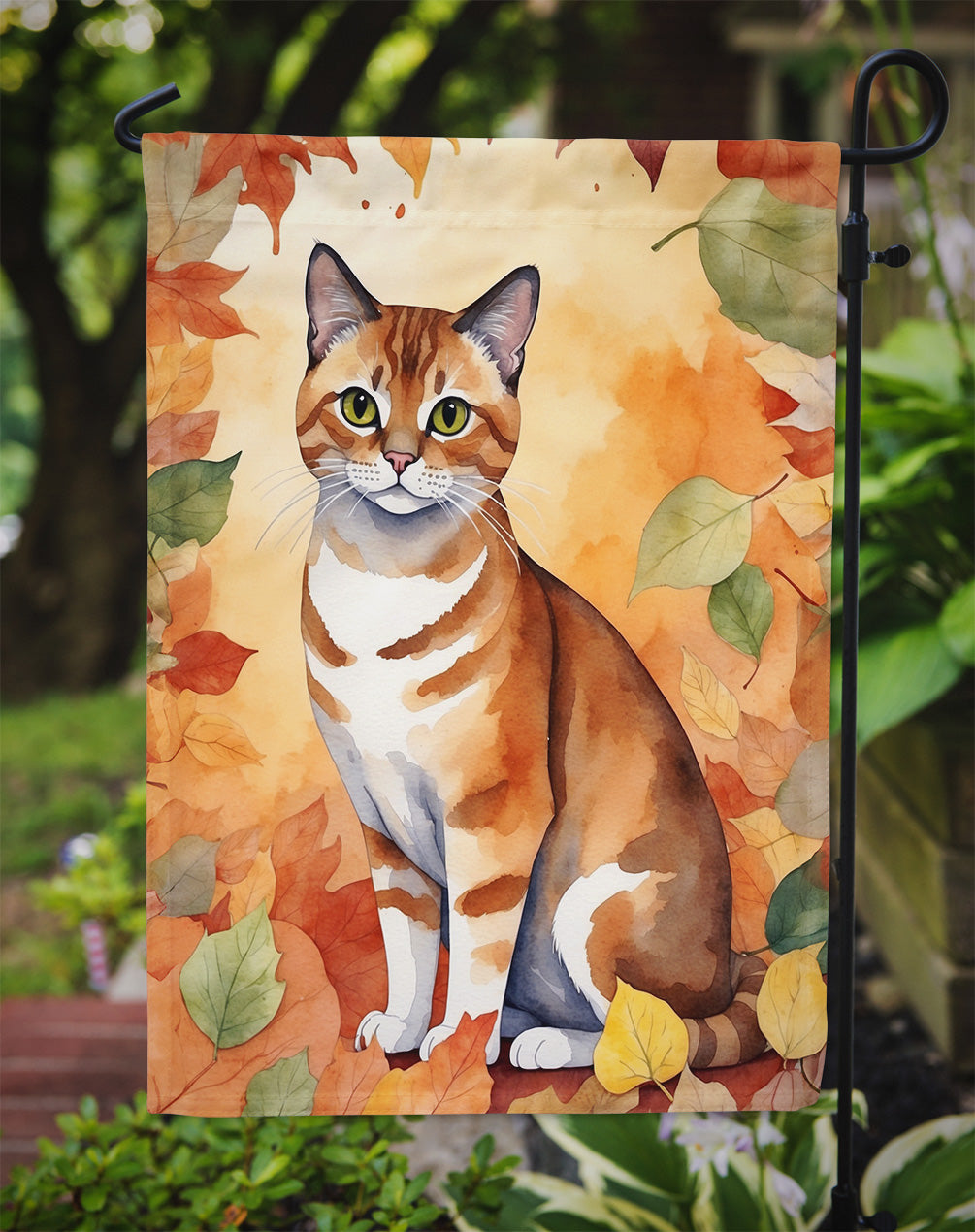 Malayan Cat in Fall Leaves Garden Flag