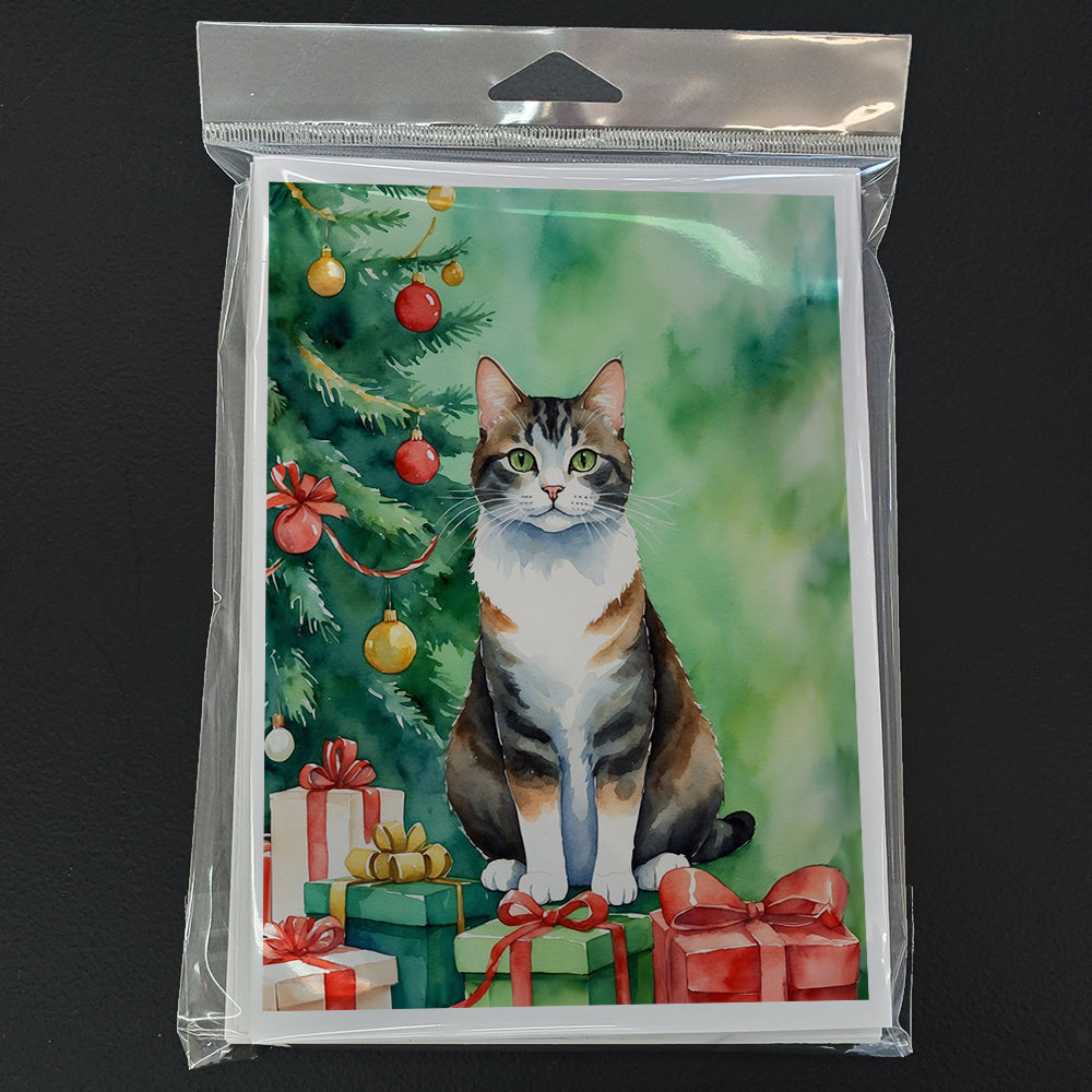Manx Cat By the Christmas Tree Greeting Cards Pack of 8
