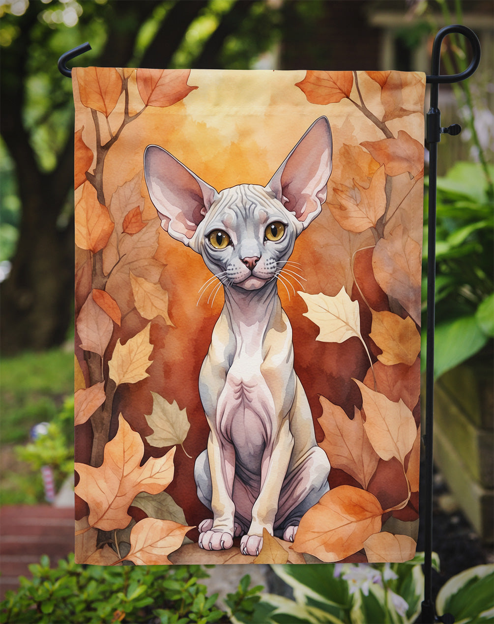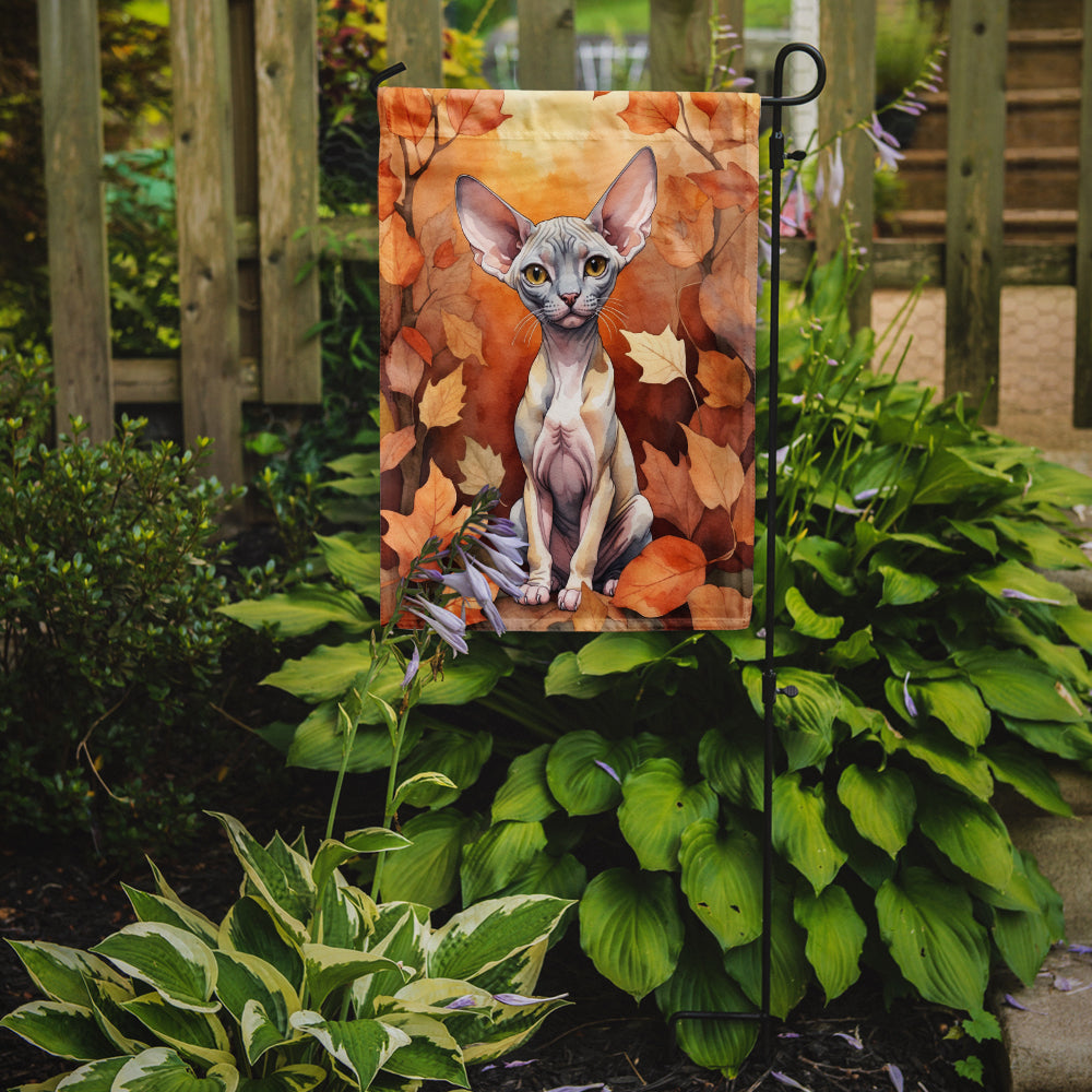 Minskin Cat in Fall Leaves Garden Flag