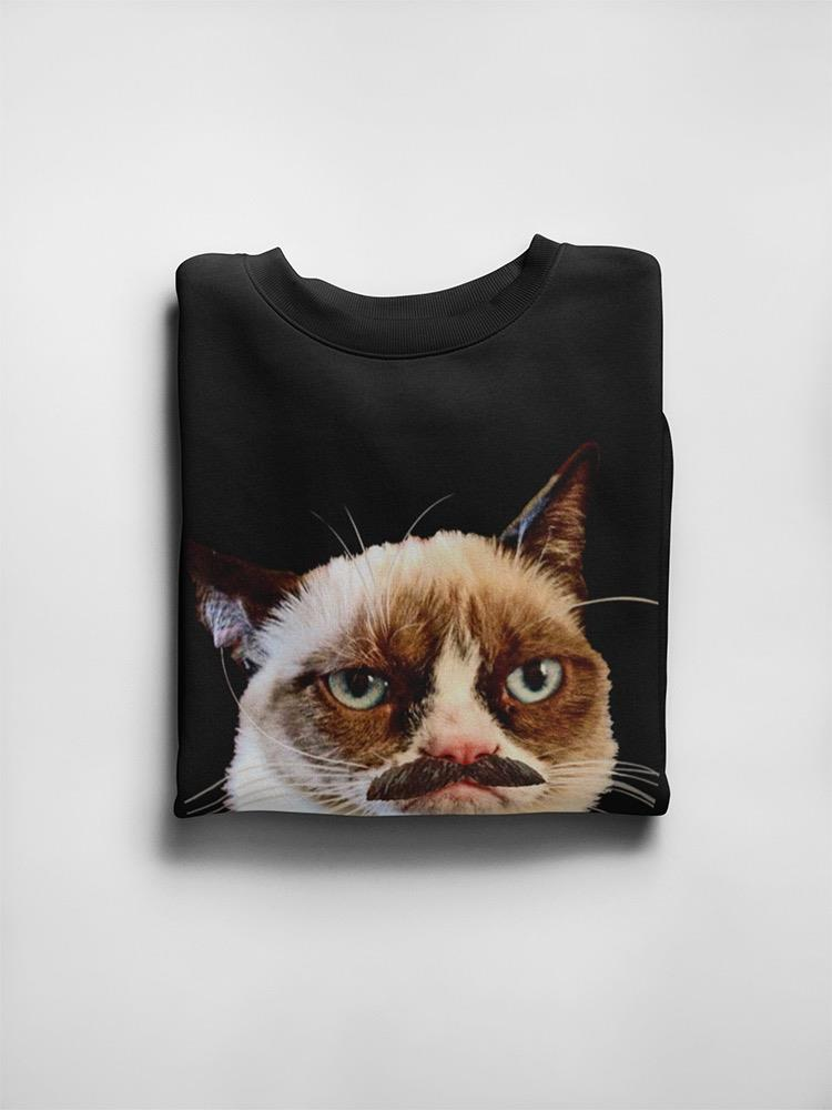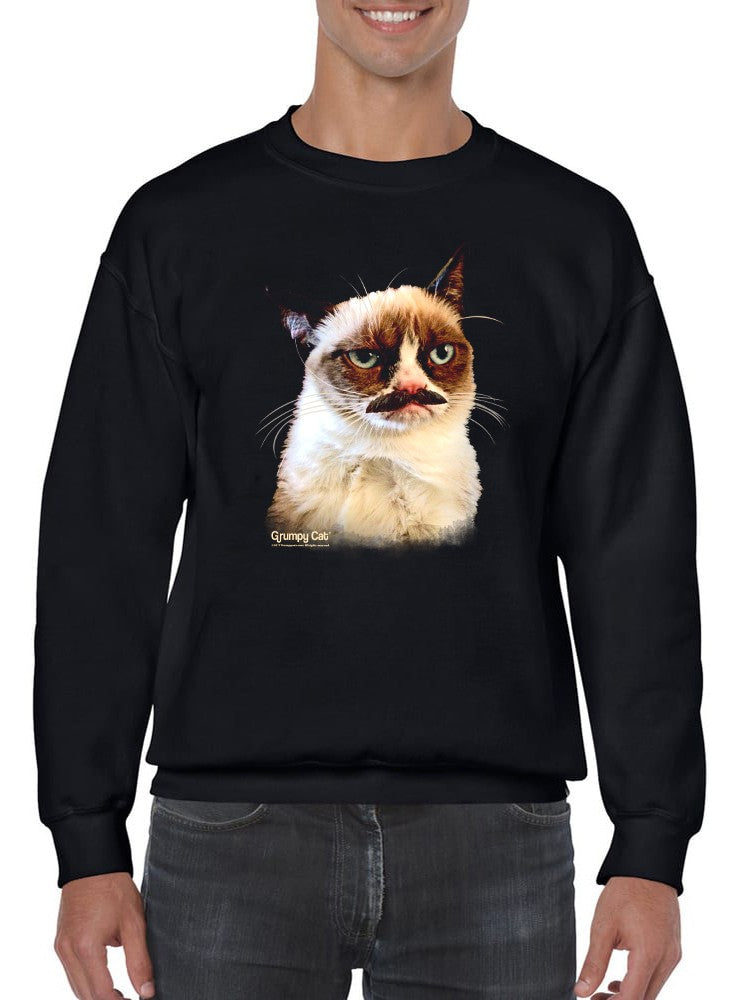 If you are fan of Grumpy Cat, you need this!. A design of Grumpy Cat face with moustache. Men's Black Sweatshirt. Design by Grumpy Cat.