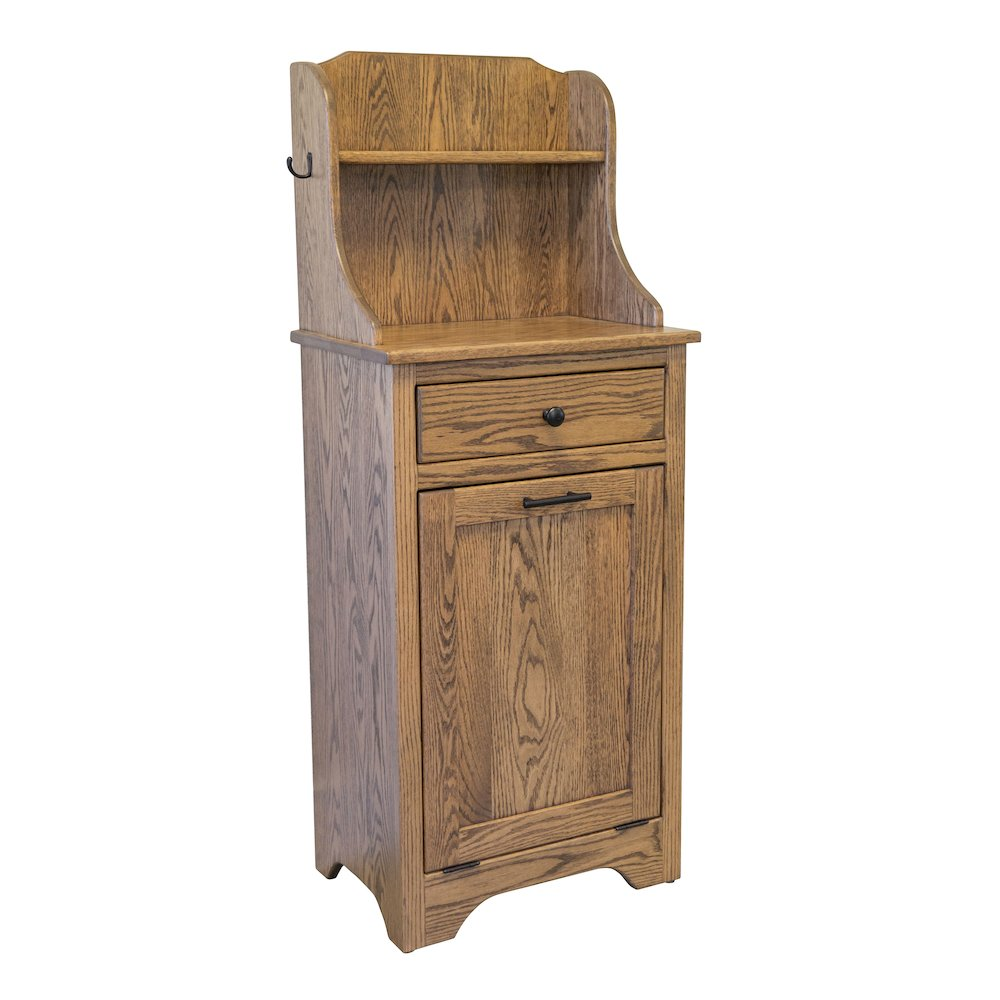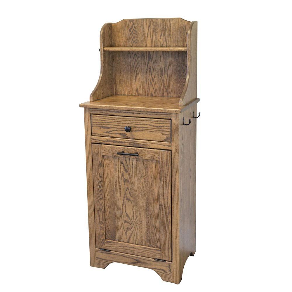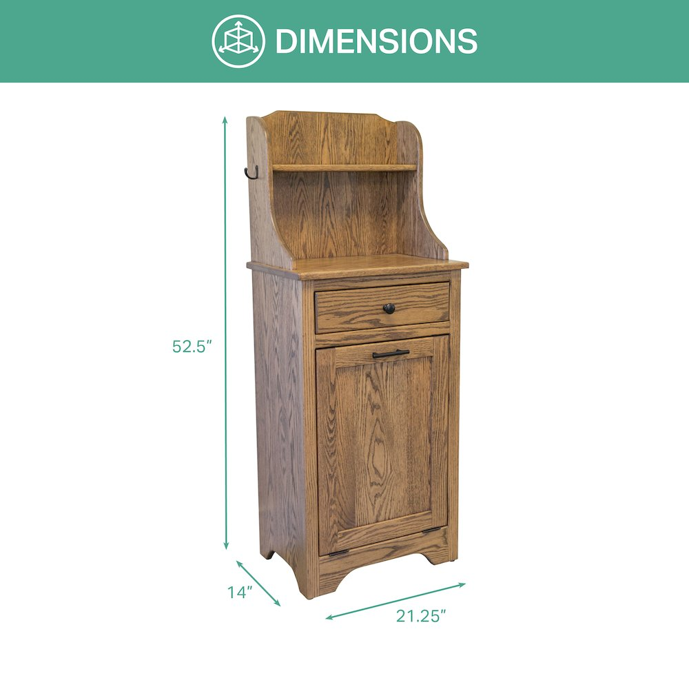 Handcrafted from solid red oak by skilled Amish artisans in America. Dimensions: 22.5 inches wide x 14 inches deep x 52.5 inches high Featuring a unique tilt-out design, this cabinet offers convenient storage for pet essentials while maintaining a sleek and organized appearance. The tilt-out compartment provides easy access to pet food, treats, toys, or grooming supplies, keeping e Elegant design with a smooth finish that enhances any interior. Sturdy and durable construction ensures long-lasting quality.