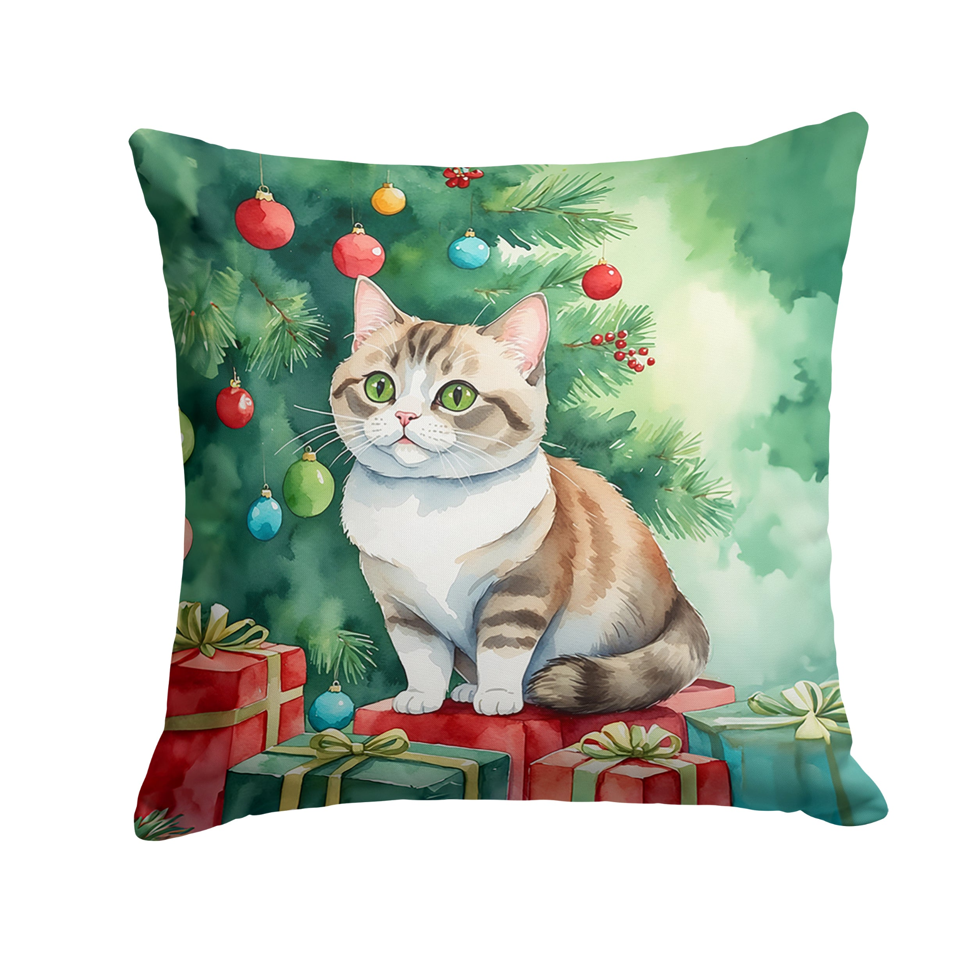 Throw Pillow featuring breed specific Munchkin artwork. Celebrate Christmas with this Christmas Pillow. Add a touch of vibrancy and comfort to your outdoor seating with Caroline's Treasures Fabric Decorative Pillow. Measuring approximately 14 inches by 14 inches, this outdoor pillow is crafted to elevate the appeal of your patio furniture, infusing it with vivid color and artistic flair. The pillow includes a 100% Polyester Fabric sham filled with a quality pillow form to provide superior comfort. Innovatively made from our brand new material, specifically woven for its water resistance, this pillow is designed for durability. The soft canvas fabric offers versatility in use, fit for your indoor couch or your outdoor patio, porch, or veranda. The fabric is dyed with colorfast dyes built for resilience against weather conditions, ensuring the pillow retains its beauty over time. Constructed by sewing three fabric pieces to create a sham, the polyester insert is then nestled inside to form the pillow, resulting in an overstuffed pillow that maintains its shape. Both the sham and the pillow insert are proudly made in the United States. As the pillows are handcrafted, there may be minor variations in size, further enhancing their unique charm. Experience comfort in style with Caroline's Treasures Fabric Decorative Pillow.