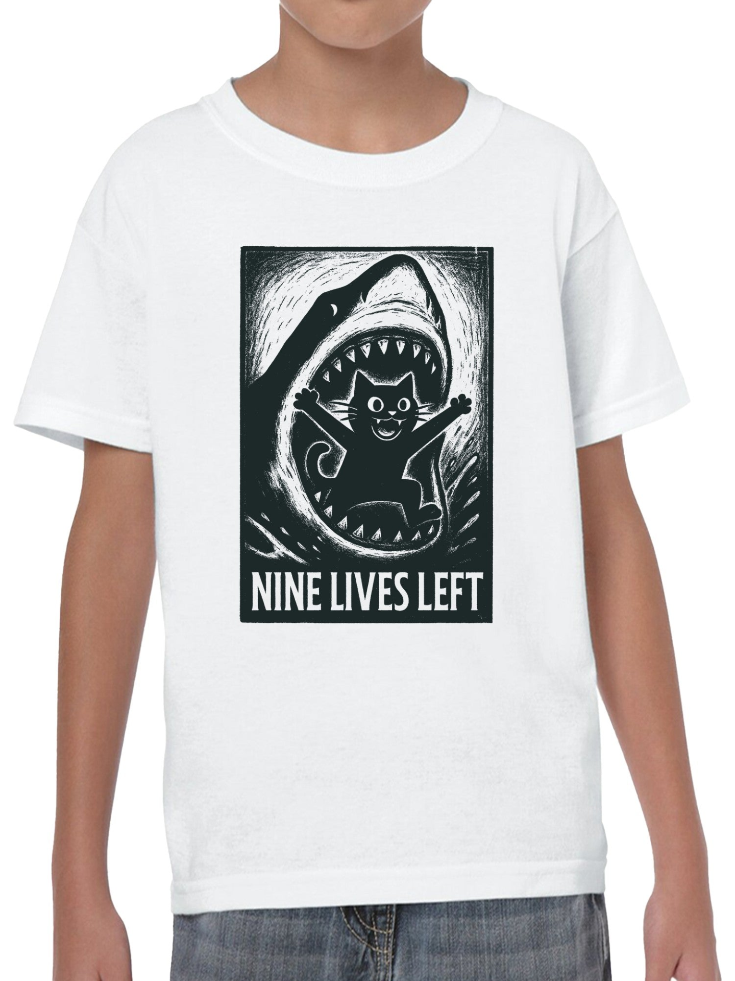 Nine Lives Left: Cat vs Shark Youth's T-shirt