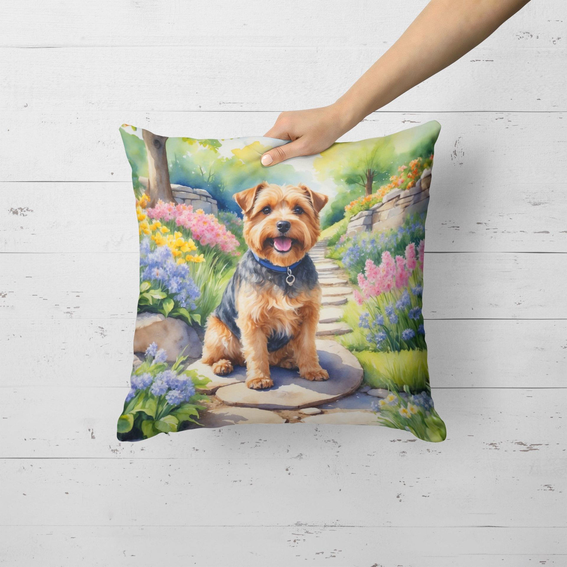 Norfolk Terrier Spring Path Throw Pillow