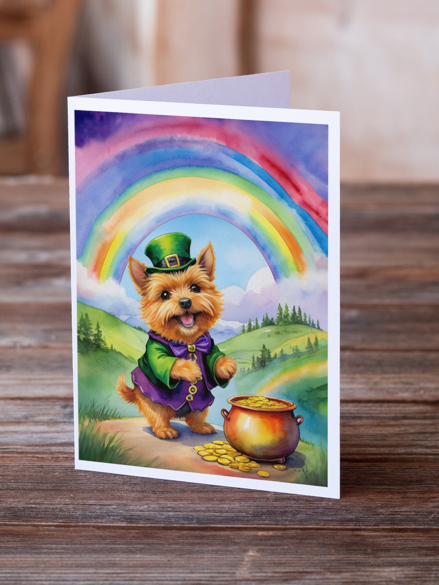 Greeting Cards Pack of 8 featuring breed specific Norwich Terrier artwork. Celebrate St Patrick's Day with this St Patrick's Day . Celebrate special moments with Caroline's Treasures Printed Greeting Card Pack. This pack includes eight beautifully folded 5x7 cards, accompanied by eight matching white envelopes. With blank interiors, these cards provide ample space for your personalized messages and heartfelt holiday greetings. Each card features captivating full-color artwork, meticulously printed in our facility on high-quality 80 lb cover stock or 216 GSM. The super smooth finish of the white cards enhances the visual impact of the artwork, creating a truly stunning presentation. Designed by our talented in-house artists or licensed artists, the artwork on these cards showcases their creativity and attention to detail. From vibrant illustrations to captivating designs, each card tells its own unique story. Whether it's for birthdays, anniversaries, holidays, or any special occasion, Caroline's Treasures Greeting Card Pack is the perfect way to convey your heartfelt sentiments. Share joy, love, and warm wishes with these exquisite cards and make every moment unforgettable.