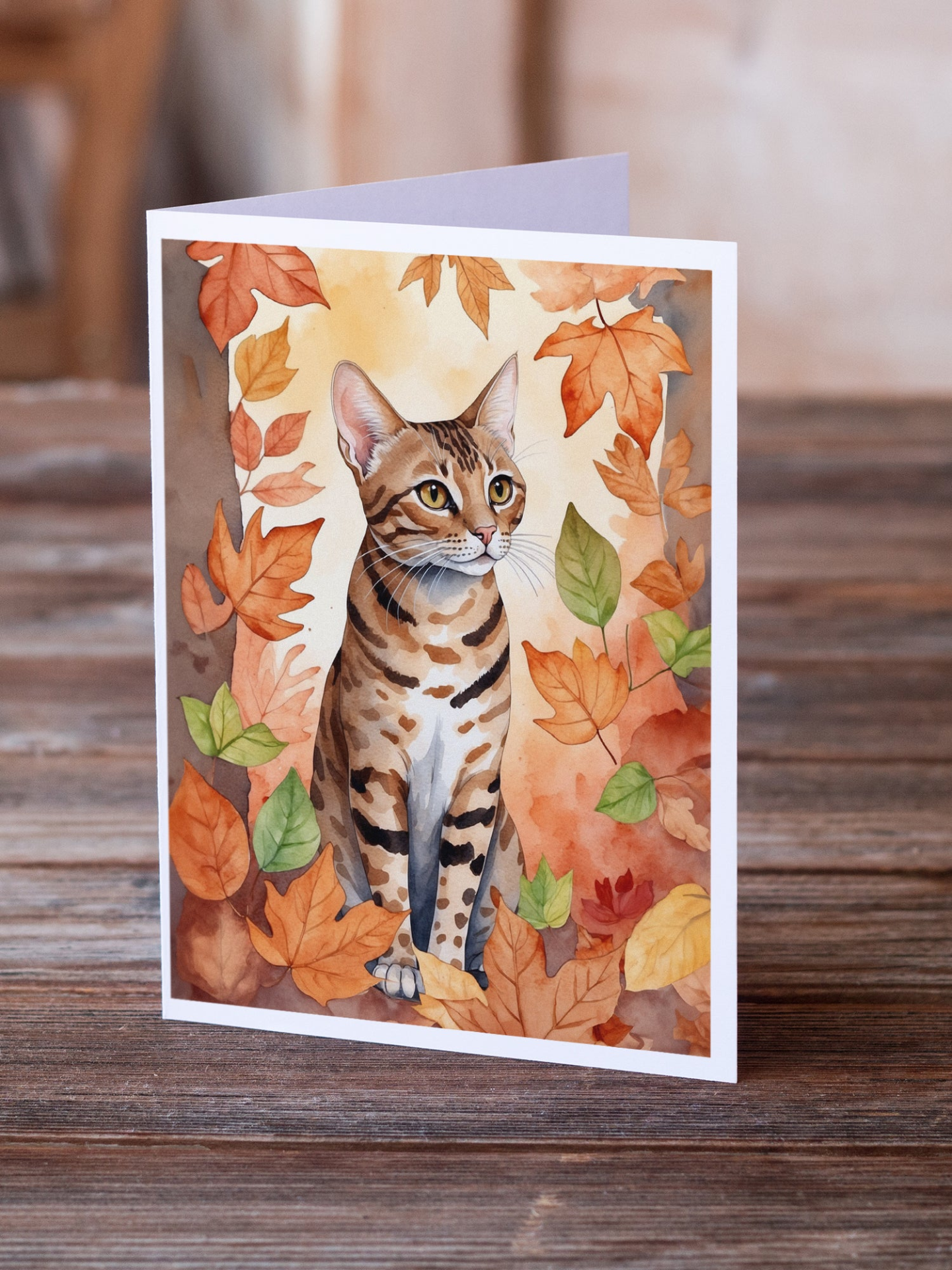 Greeting Cards Pack of 8 featuring breed specific Ocicat artwork. Celebrate special moments with Caroline's Treasures Printed Greeting Card Pack. This pack includes eight beautifully folded 5x7 cards, accompanied by eight matching white envelopes. With blank interiors, these cards provide ample space for your personalized messages and heartfelt holiday greetings. Each card features captivating full-color artwork, meticulously printed in our facility on high-quality 80 lb cover stock or 216 GSM. The super smooth finish of the white cards enhances the visual impact of the artwork, creating a truly stunning presentation. Designed by our talented in-house artists or licensed artists, the artwork on these cards showcases their creativity and attention to detail. From vibrant illustrations to captivating designs, each card tells its own unique story. Whether it's for birthdays, anniversaries, holidays, or any special occasion, Caroline's Treasures Greeting Card Pack is the perfect way to convey your heartfelt sentiments. Share joy, love, and warm wishes with these exquisite cards and make every moment unforgettable.