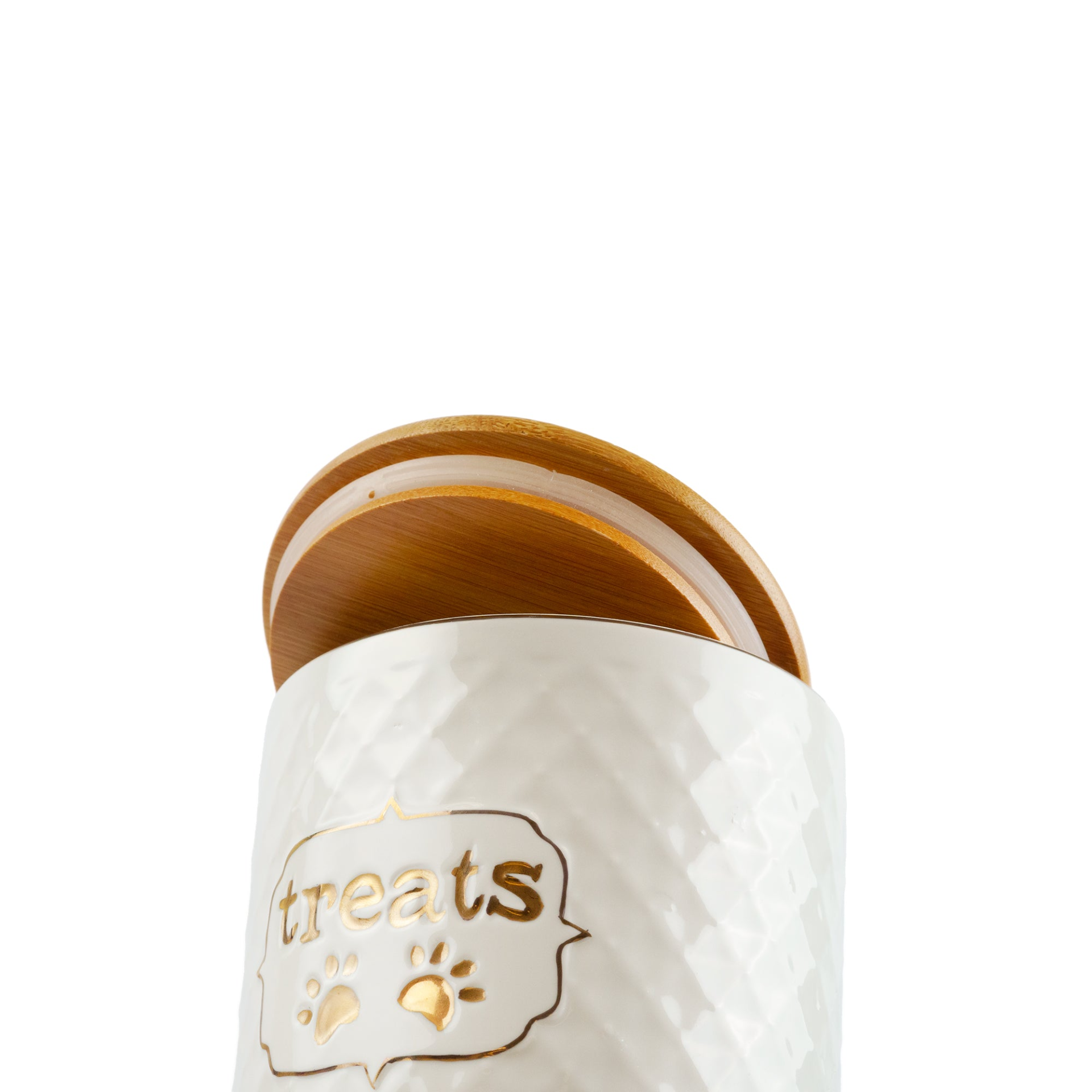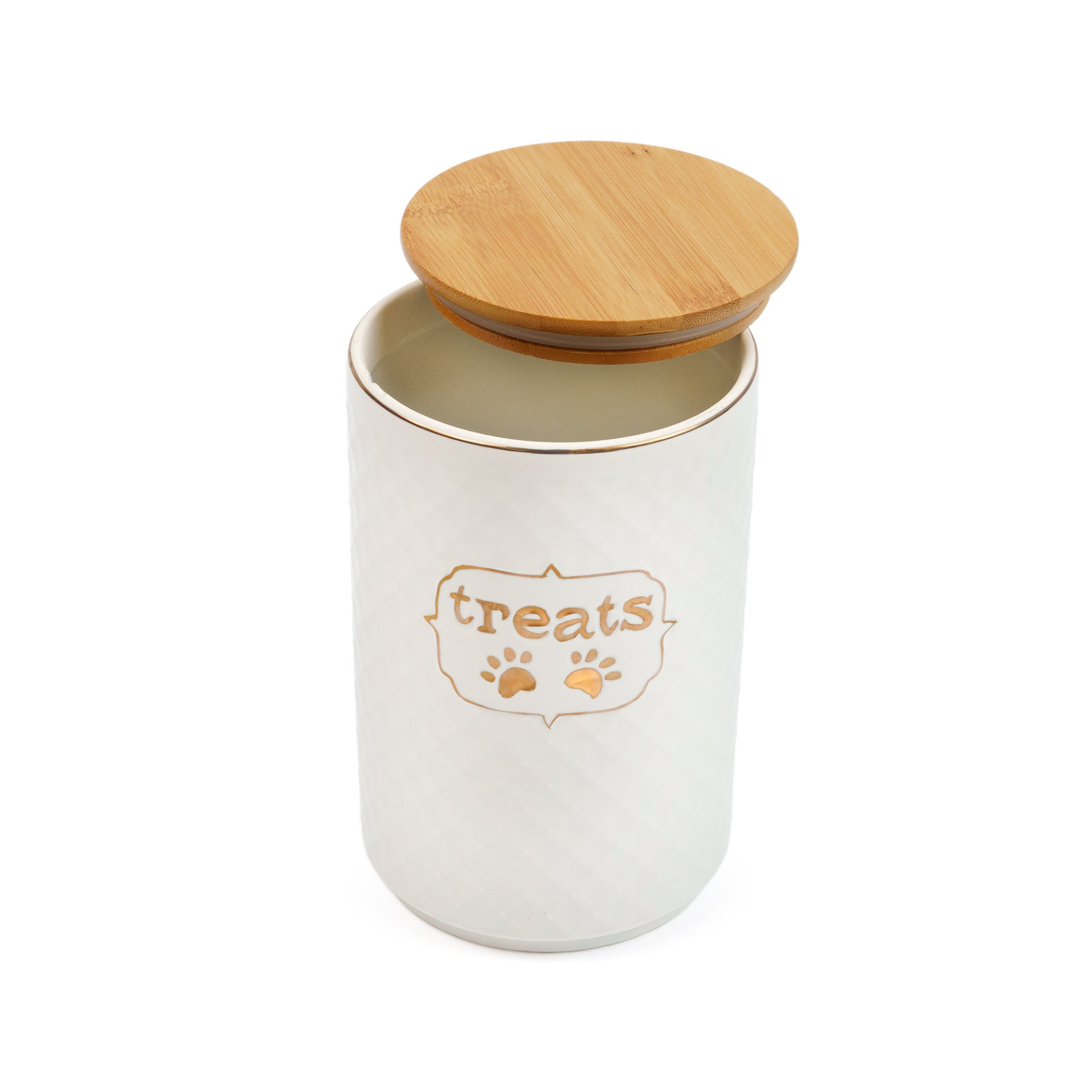 The One Paw Textured Ceramic Treat Jar offers pet owners a stylish and functional solution for storing treats. Made from durable ceramic, this jar features a beautifully textured design that adds an elegant touch to your kitchen or pet area. With a generous capacity of 1800ml, it is perfect for keeping a substantial amount of treats fresh and easily accessible. The ceramic material ensures durability and longevity, capable of withstanding daily use. Its tight-sealing lid helps maintain the freshness of the treats, preventing them from becoming stale. Measuring 13 x 13 x 21 cm, this treat jar is compact enough to fit on any countertop while providing ample storage space. The One Paw Textured Ceramic Treat Jar combines aesthetics with practicality, making it an excellent addition to any pet owner's home.