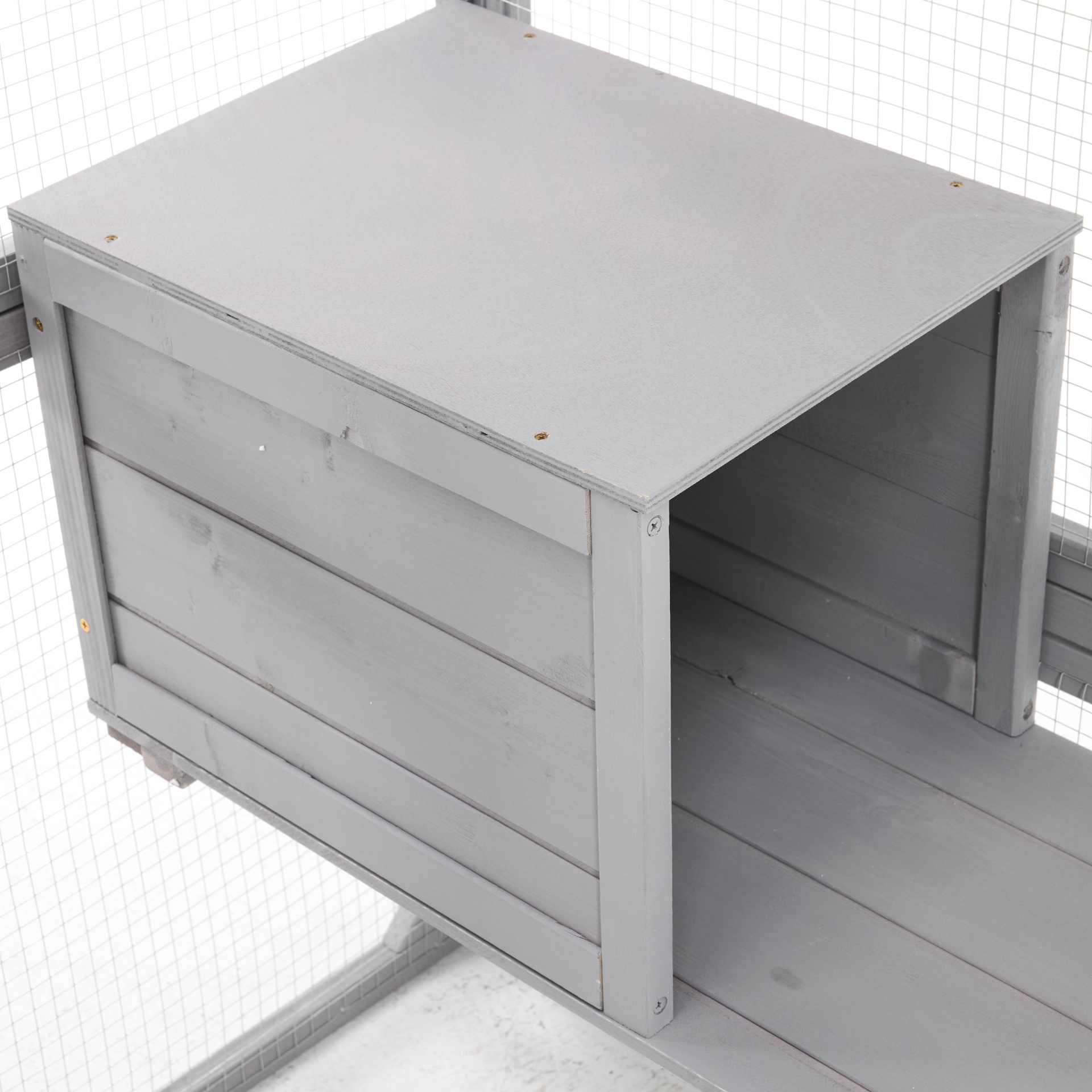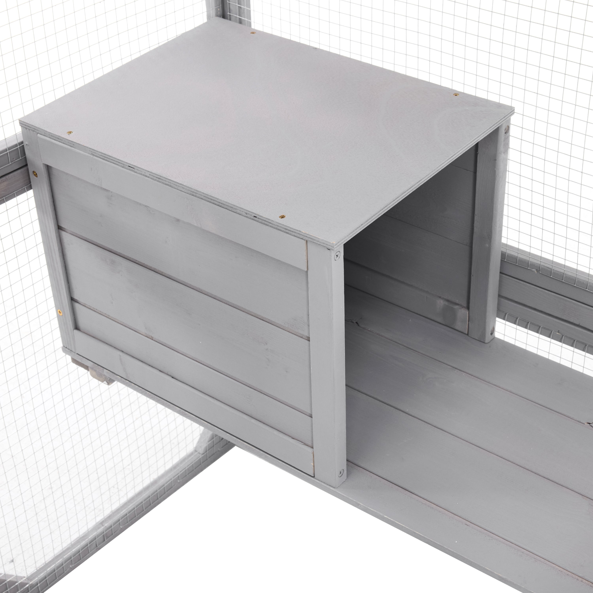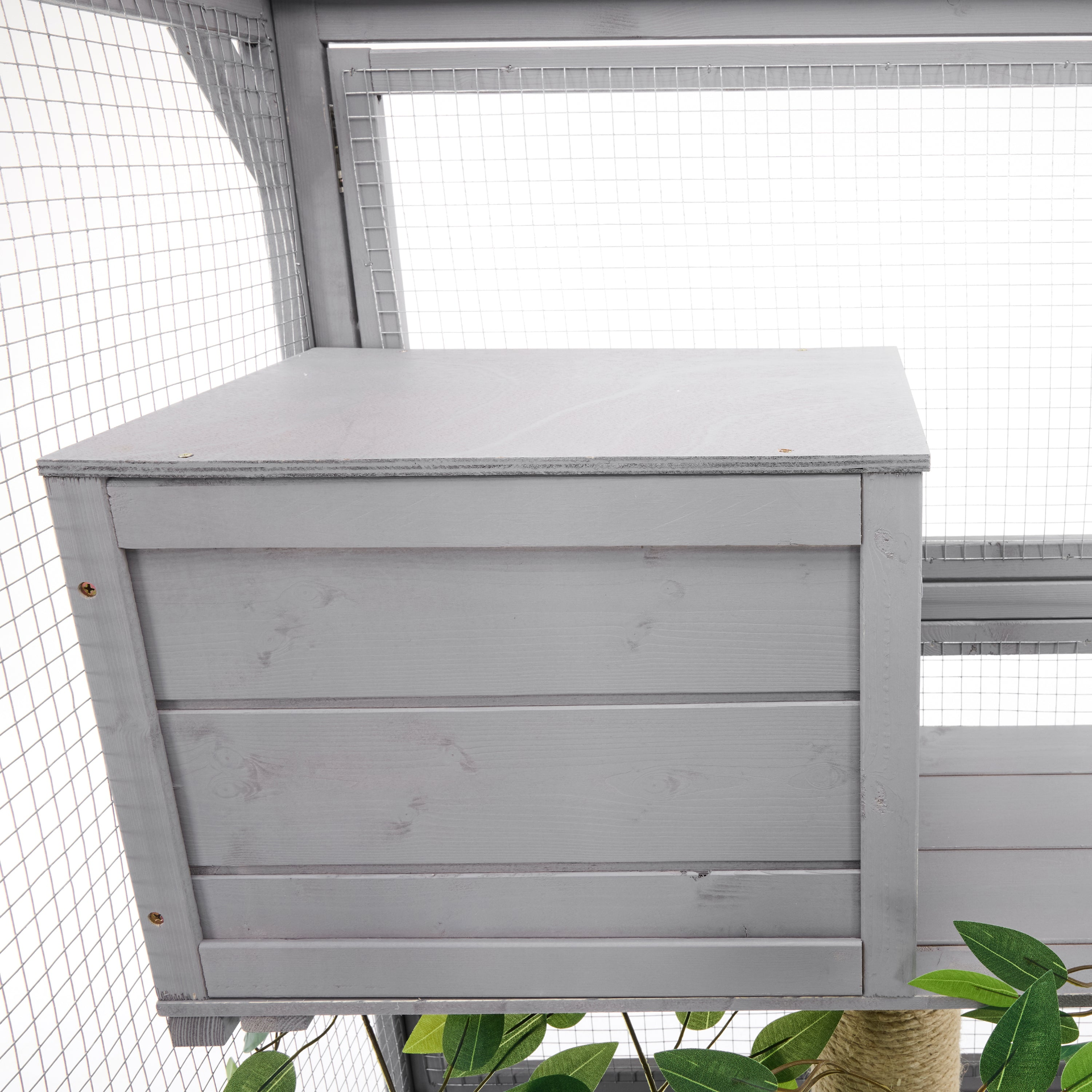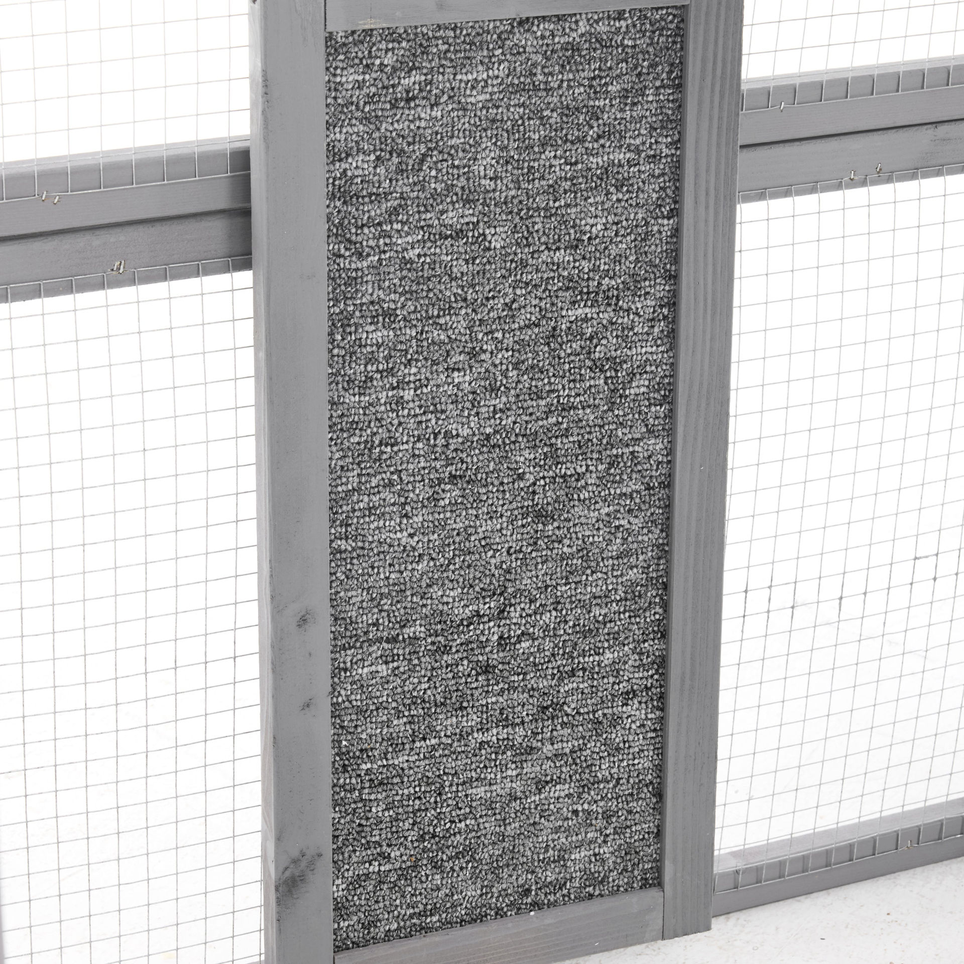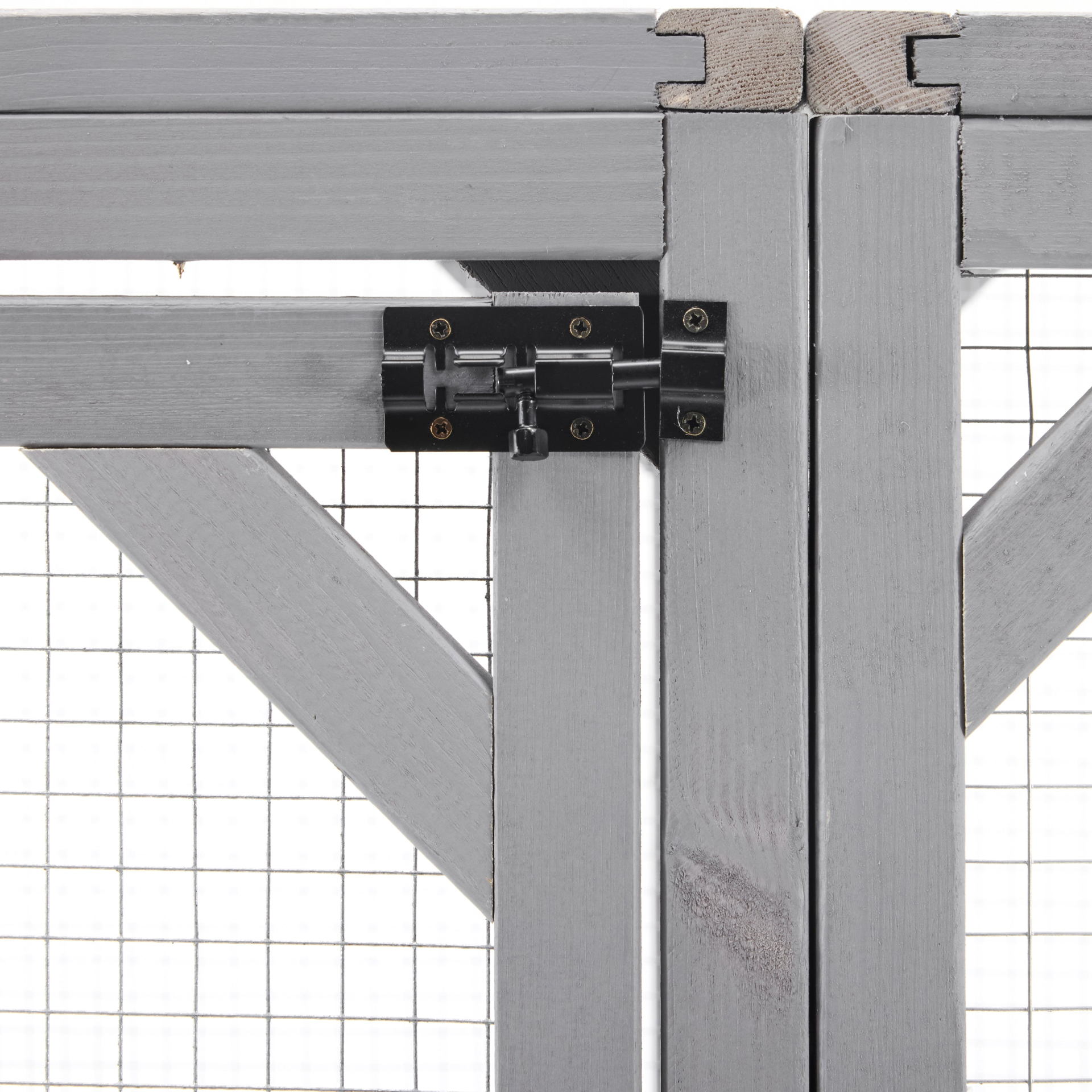 • Durable and Safe Construction - Made from high-quality pine wood and reinforced with galvanized wire mesh, this outdoor cat enclosure is built to withstand the elements while providing a safe and secure environment for your feline friends. The sturdy structure ensures that the cage remains stable even during vigorous play.