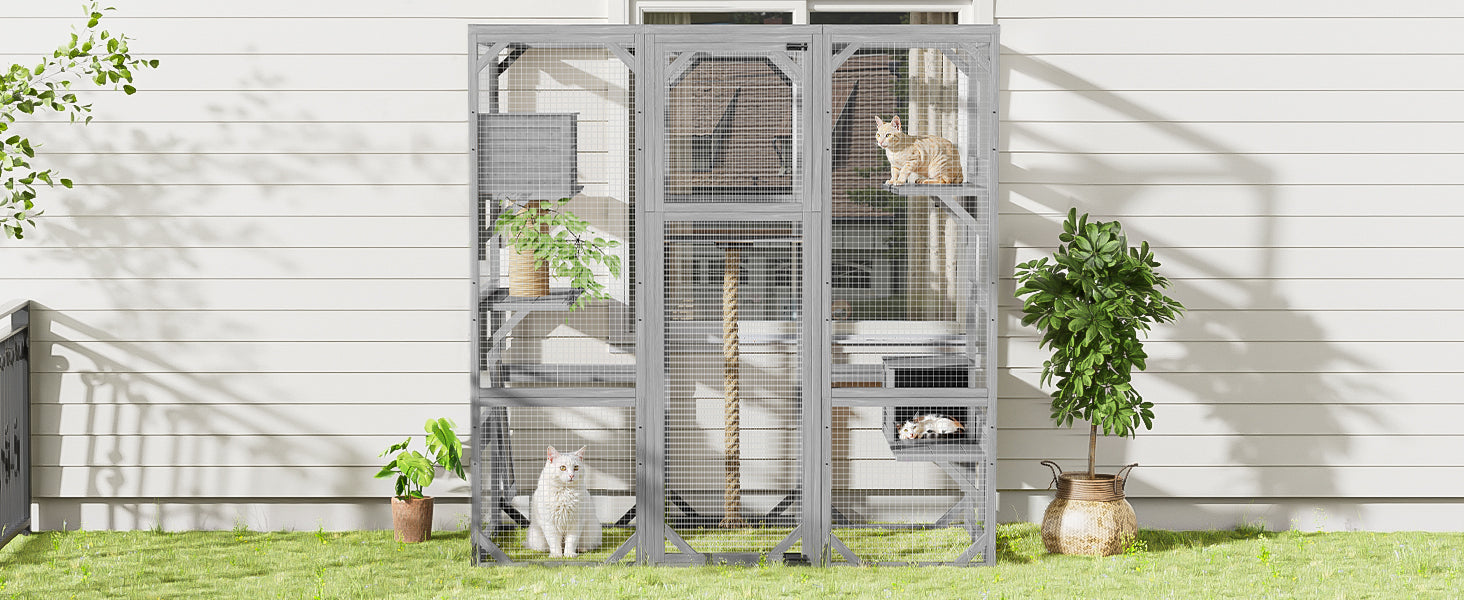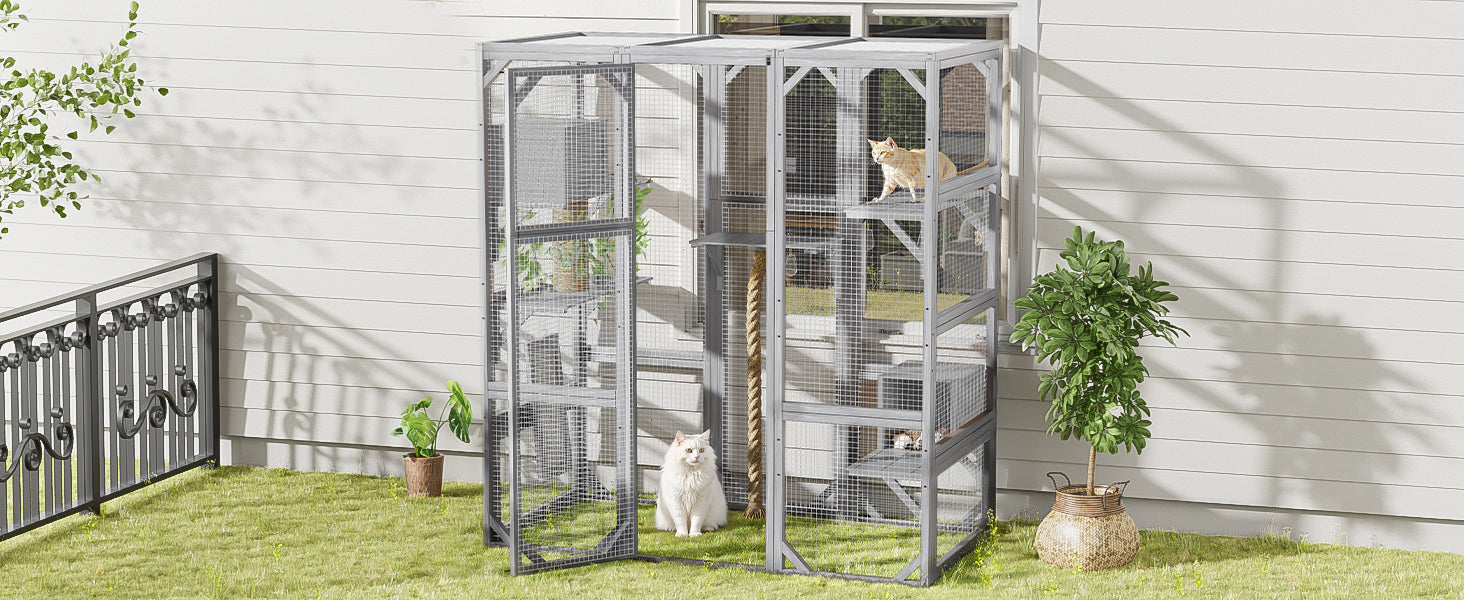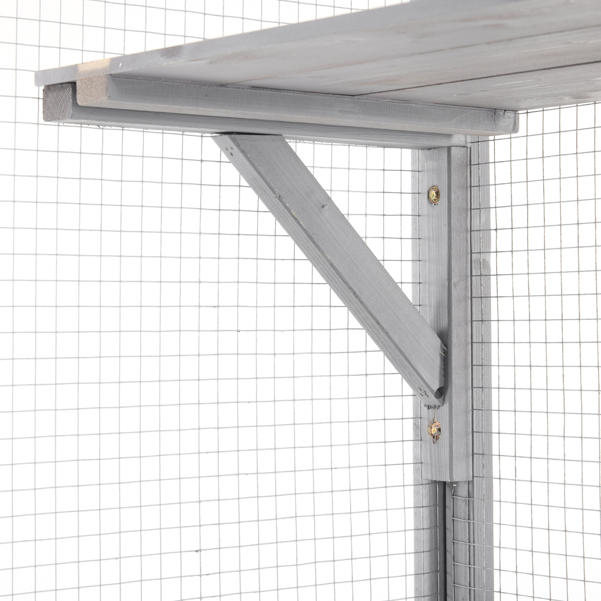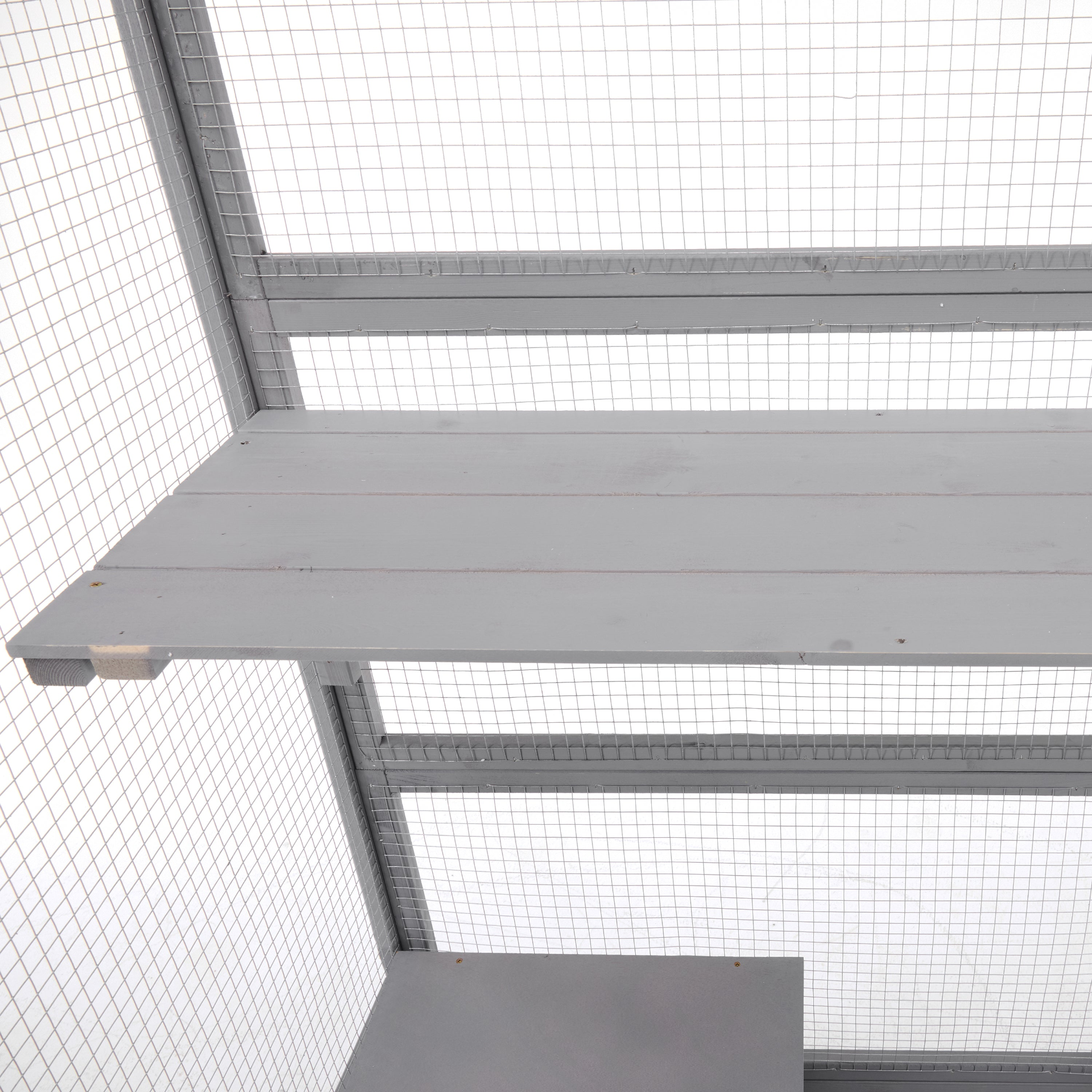 This outdoor walk-in cat enclosure is thoughtfully designed with three elevated platforms, providing generous space for your cat to leap, climb, and explore in a secure environment.