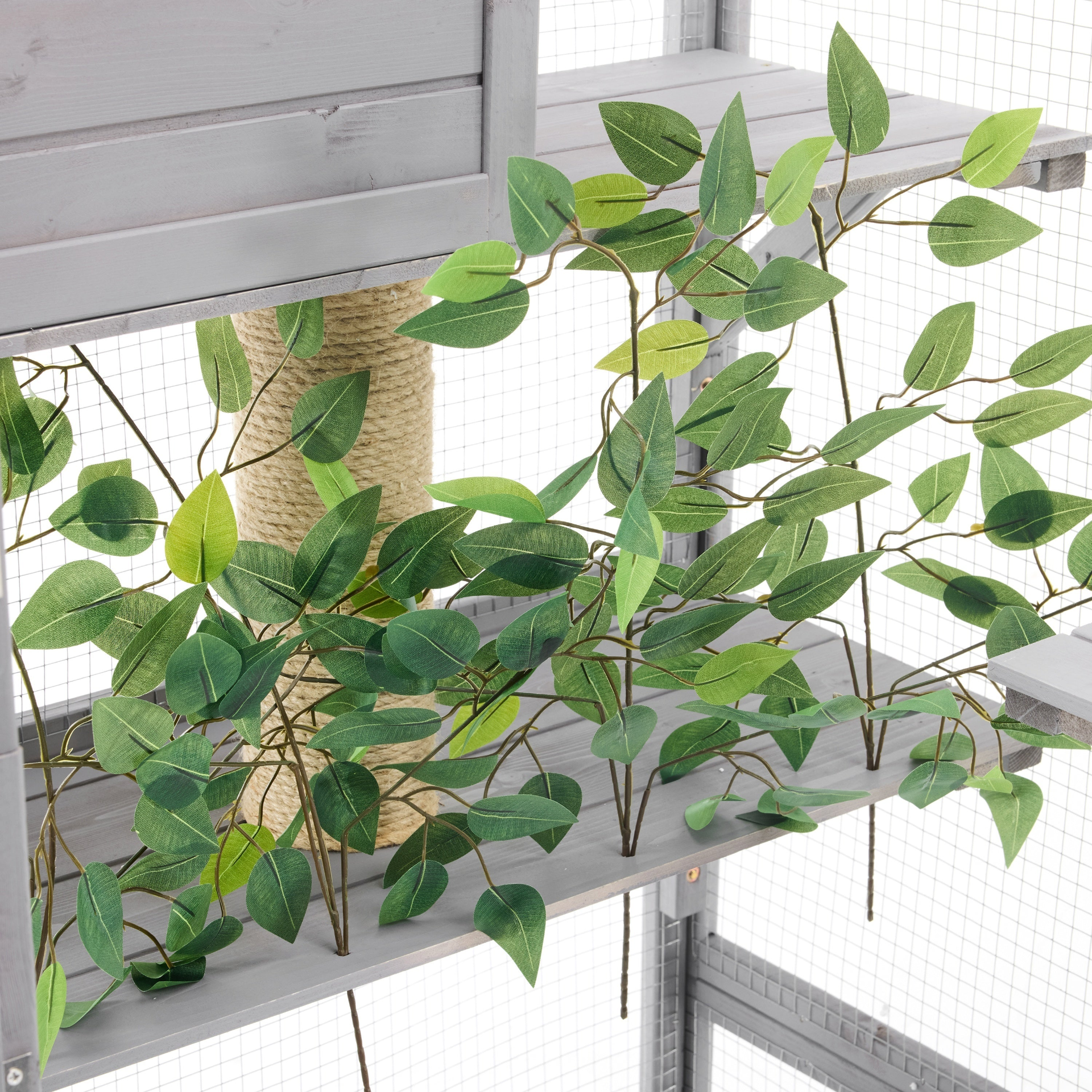 • Natural Touch with Faux Tree Leaves - The catio comes with faux tree leaves that add a natural aesthetic to the design. This small touch not only enhances the visual appeal of the cage but also helps to create a more comfortable and stimulating environment for your cats, making them feel more connected to nature.