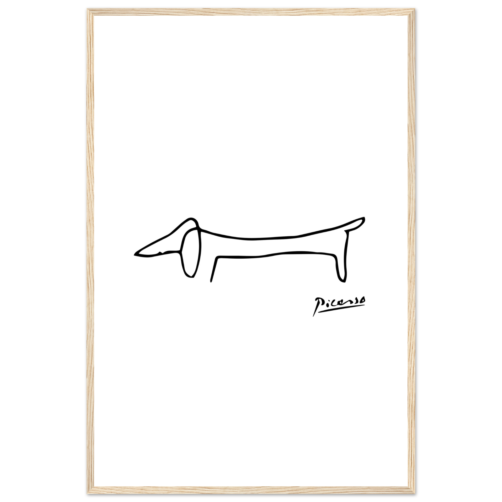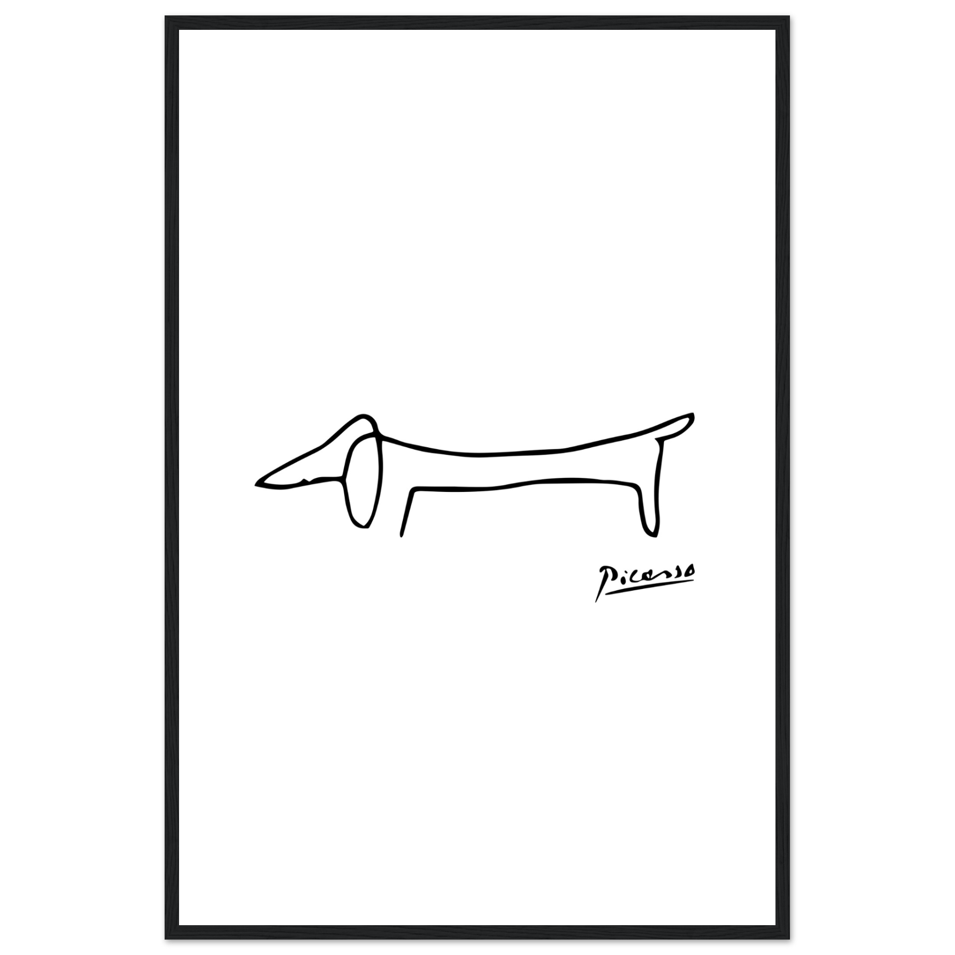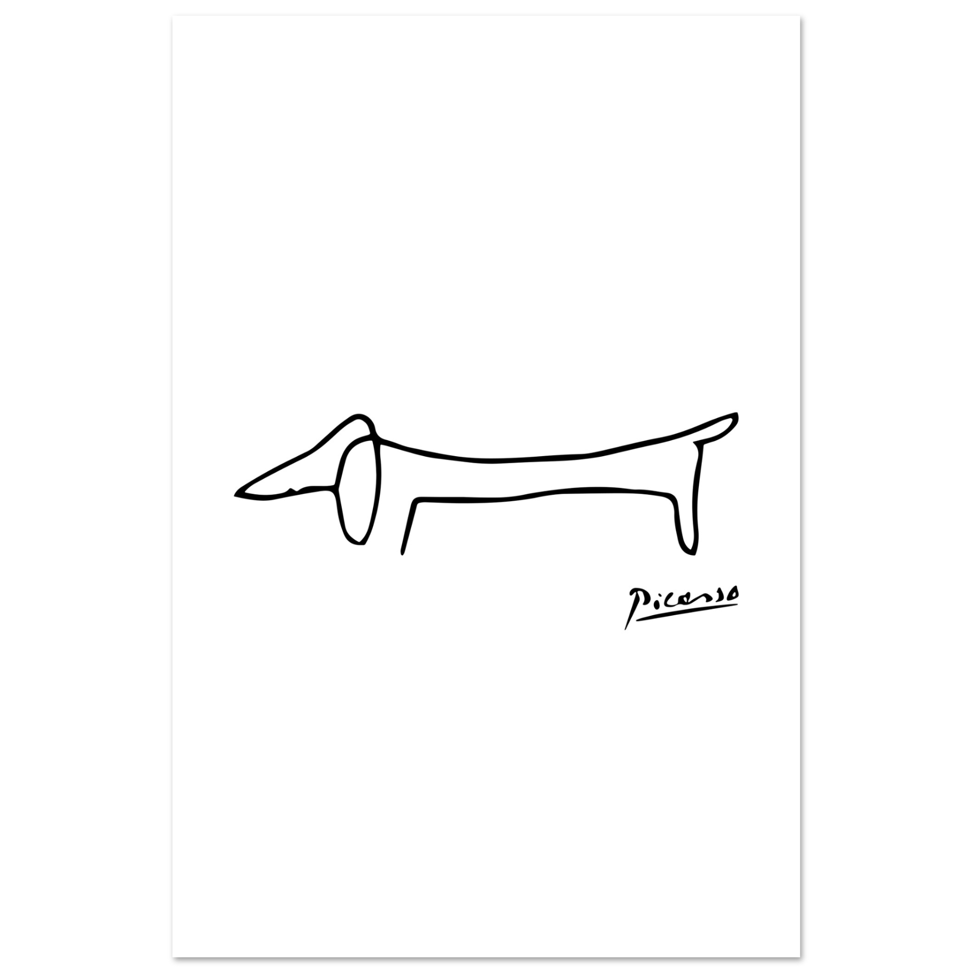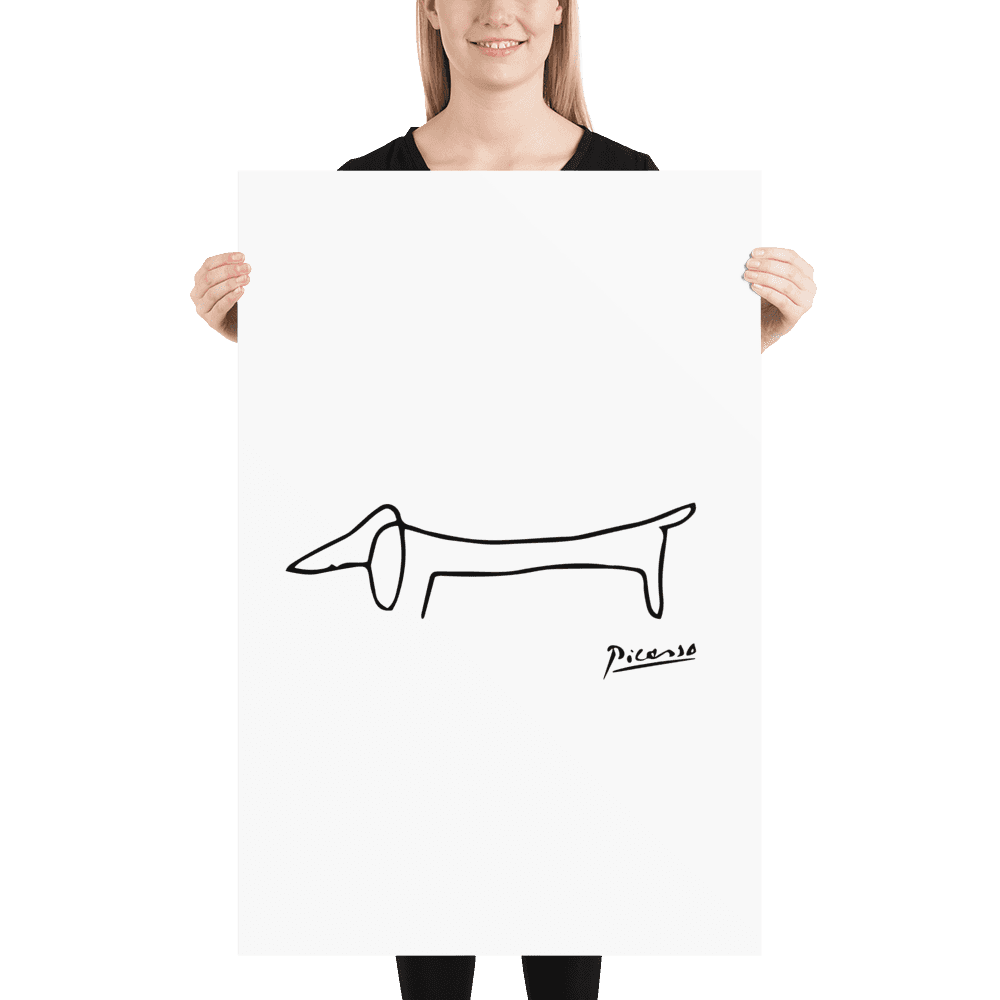 This amazing poster features a homage paid by Pablo Picasso to his self-assured little dachshund called Lump. While some old masters made a point of including the faces of fellow artists and patrons in the crowds portrayed in large oil paintings, the 'maestro' used to paint his little friend.