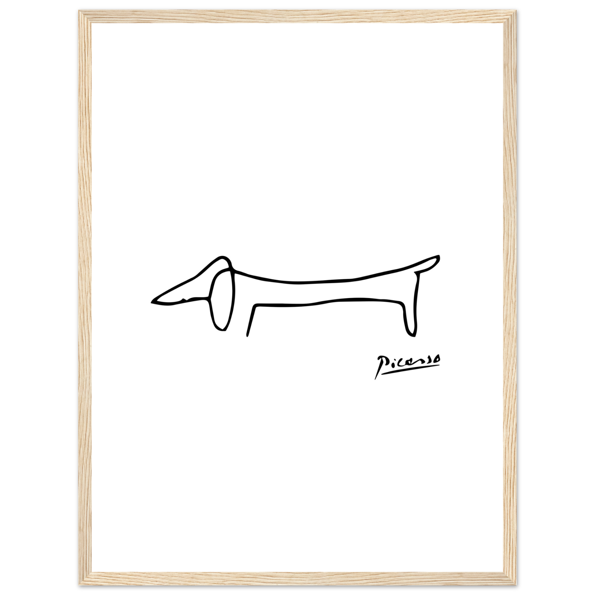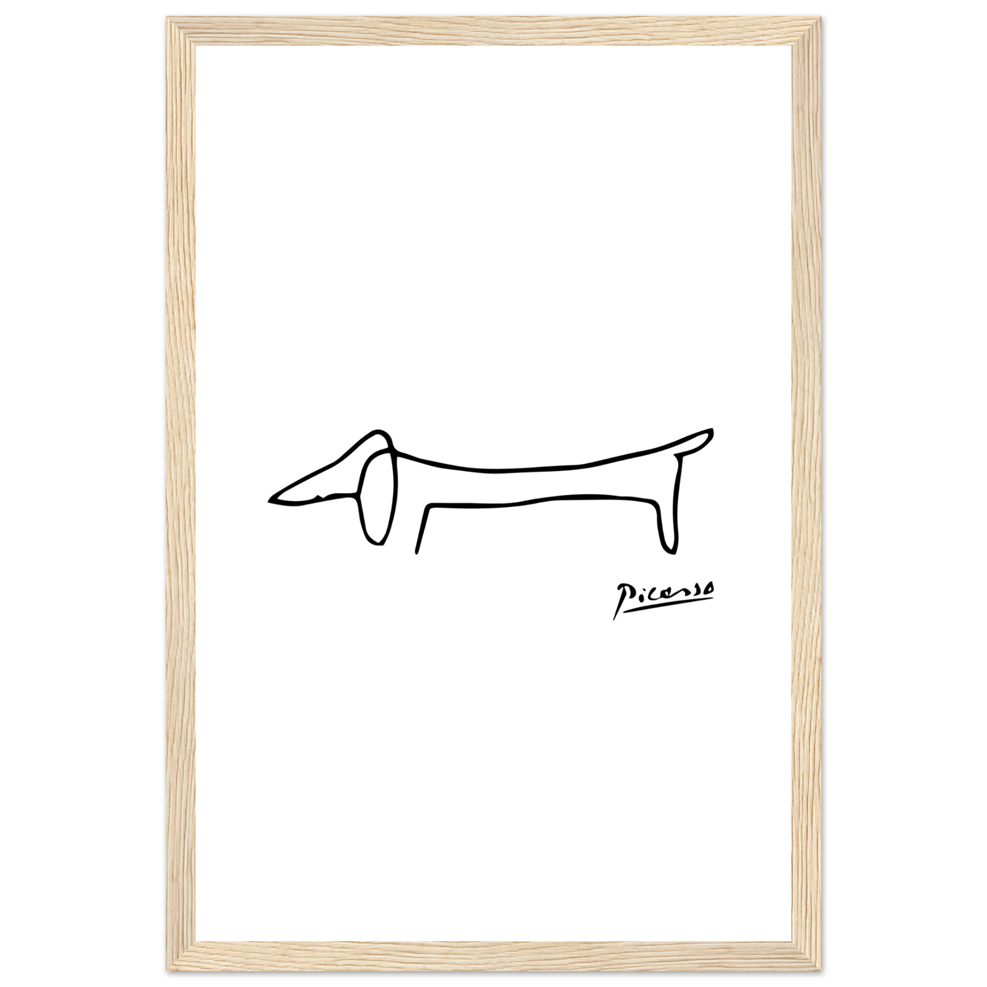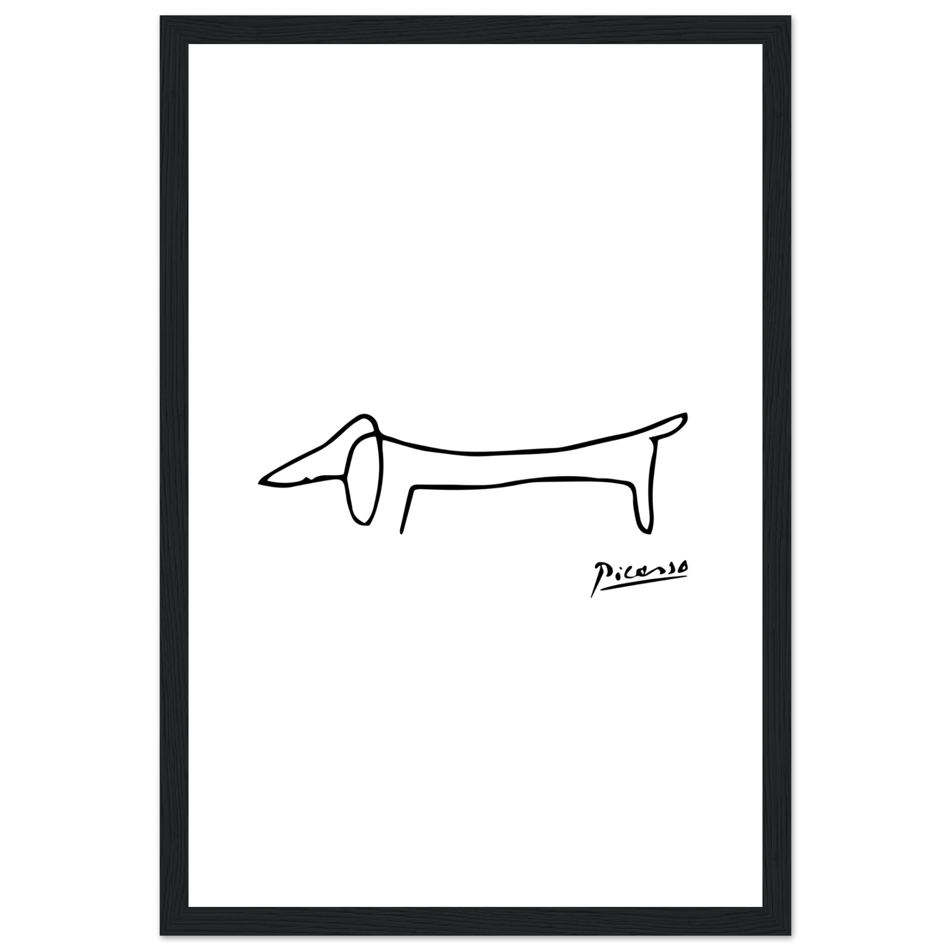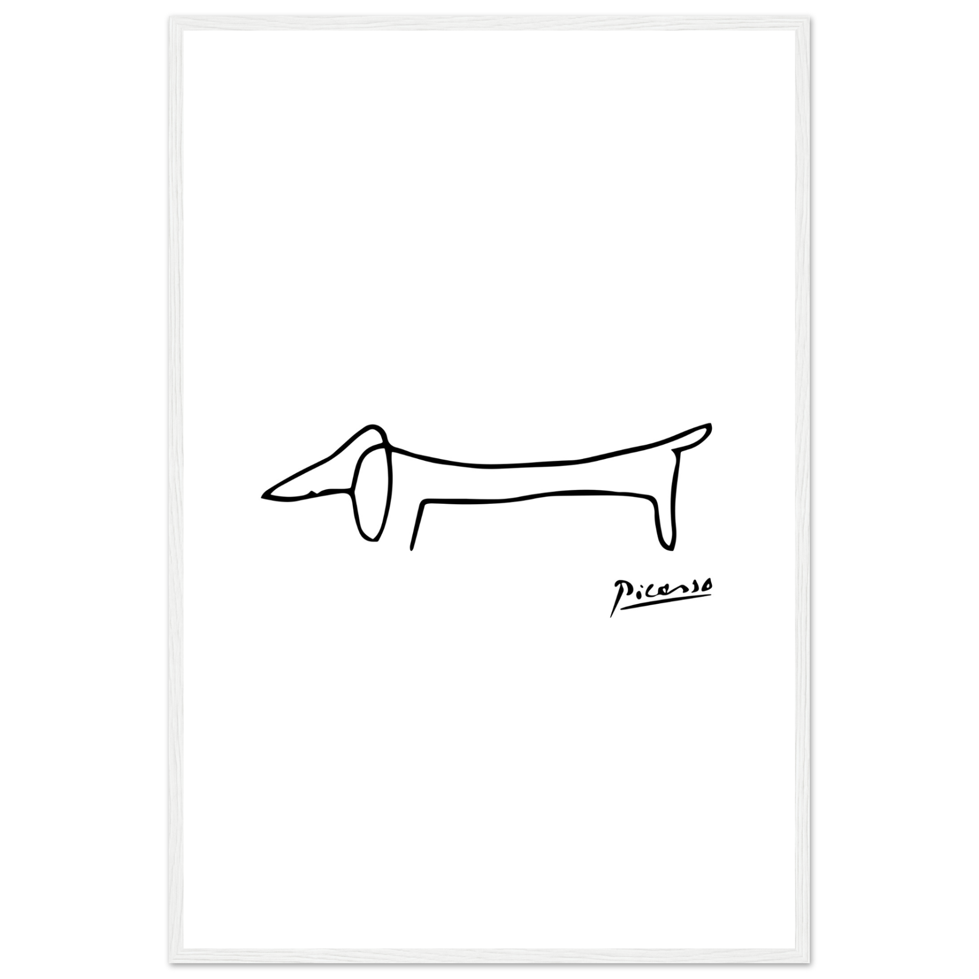 This amazing poster features a homage paid by Pablo Picasso to his self-assured little dachshund called Lump. While some old masters made a point of including the faces of fellow artists and patrons in the crowds portrayed in large oil paintings, the 'maestro' used to paint his little friend.