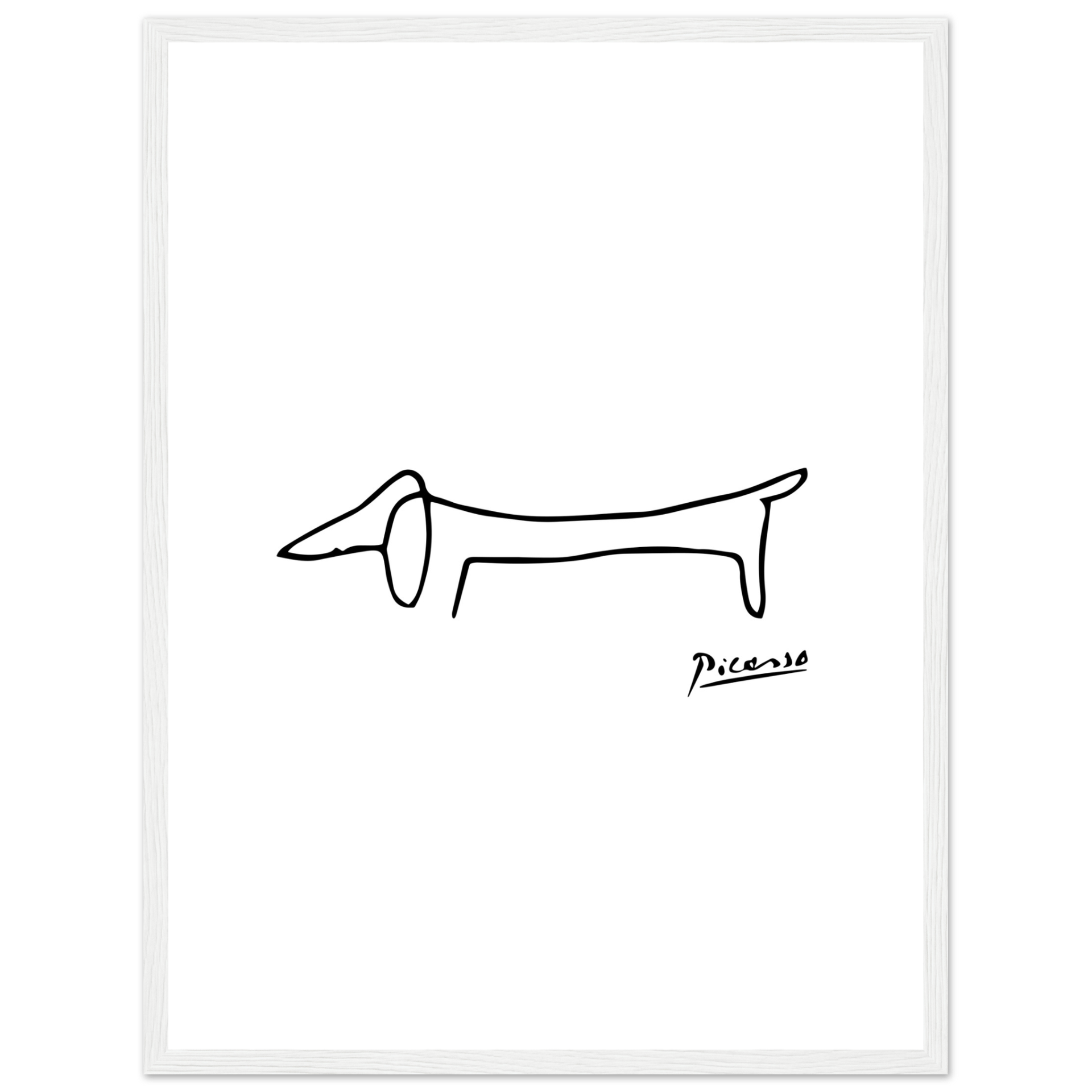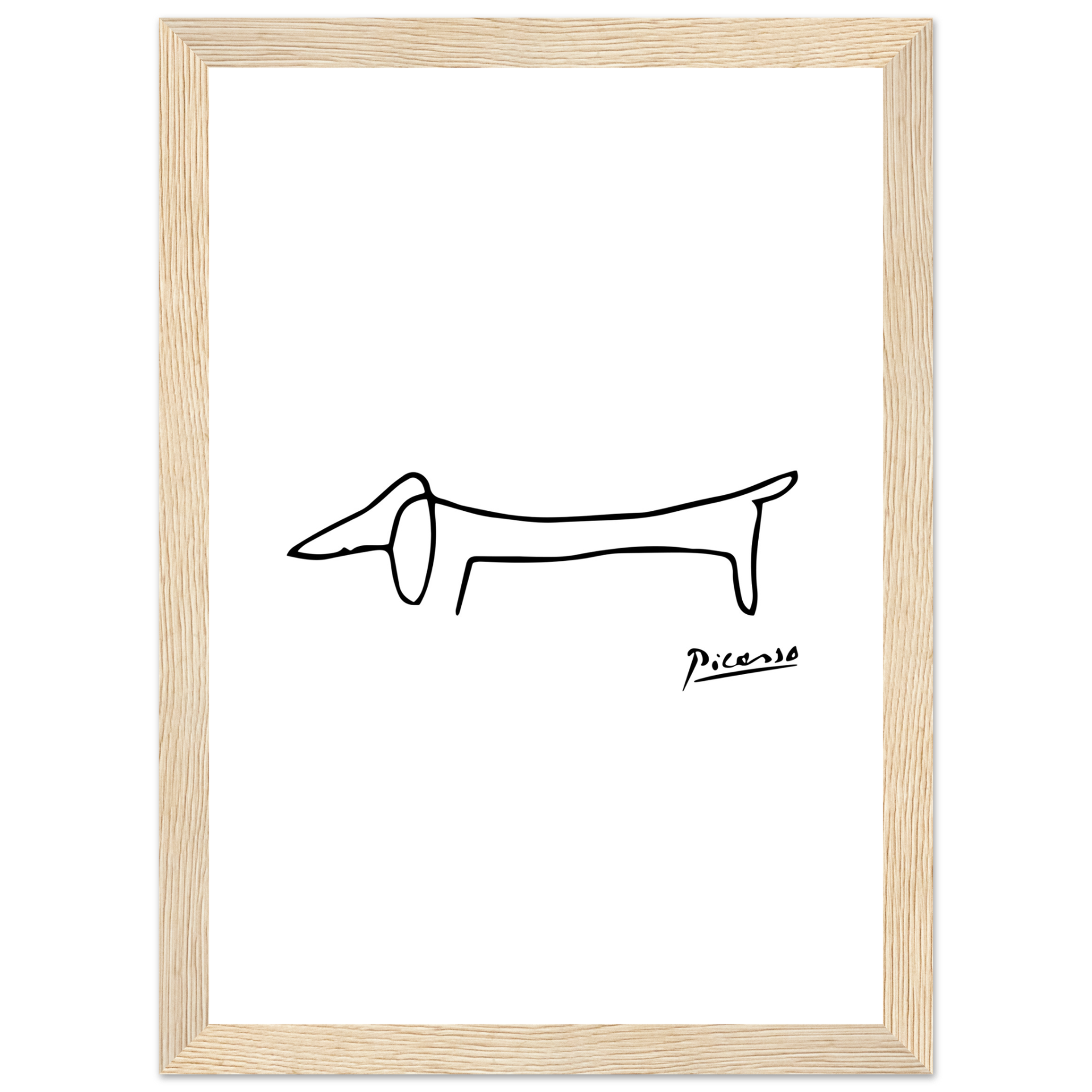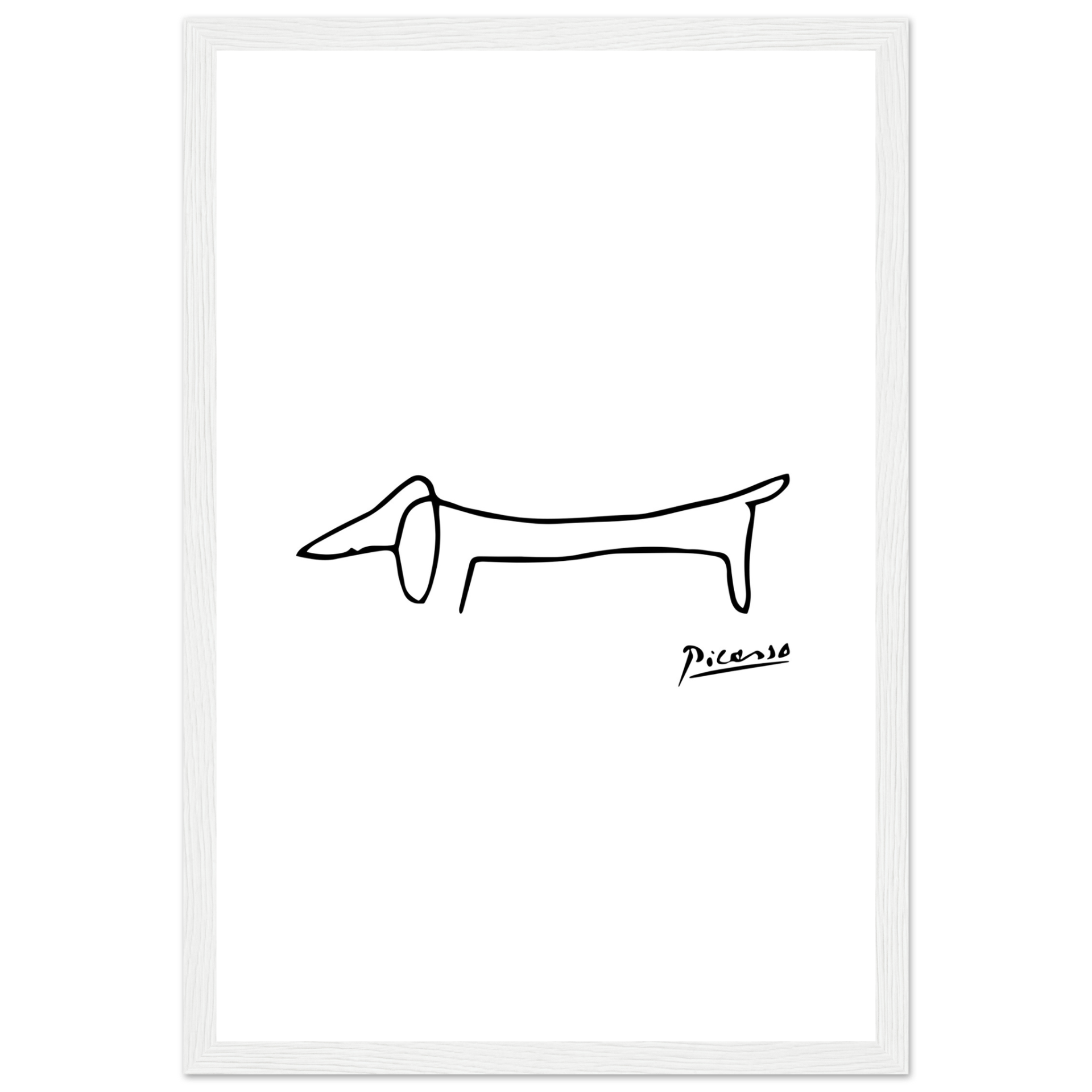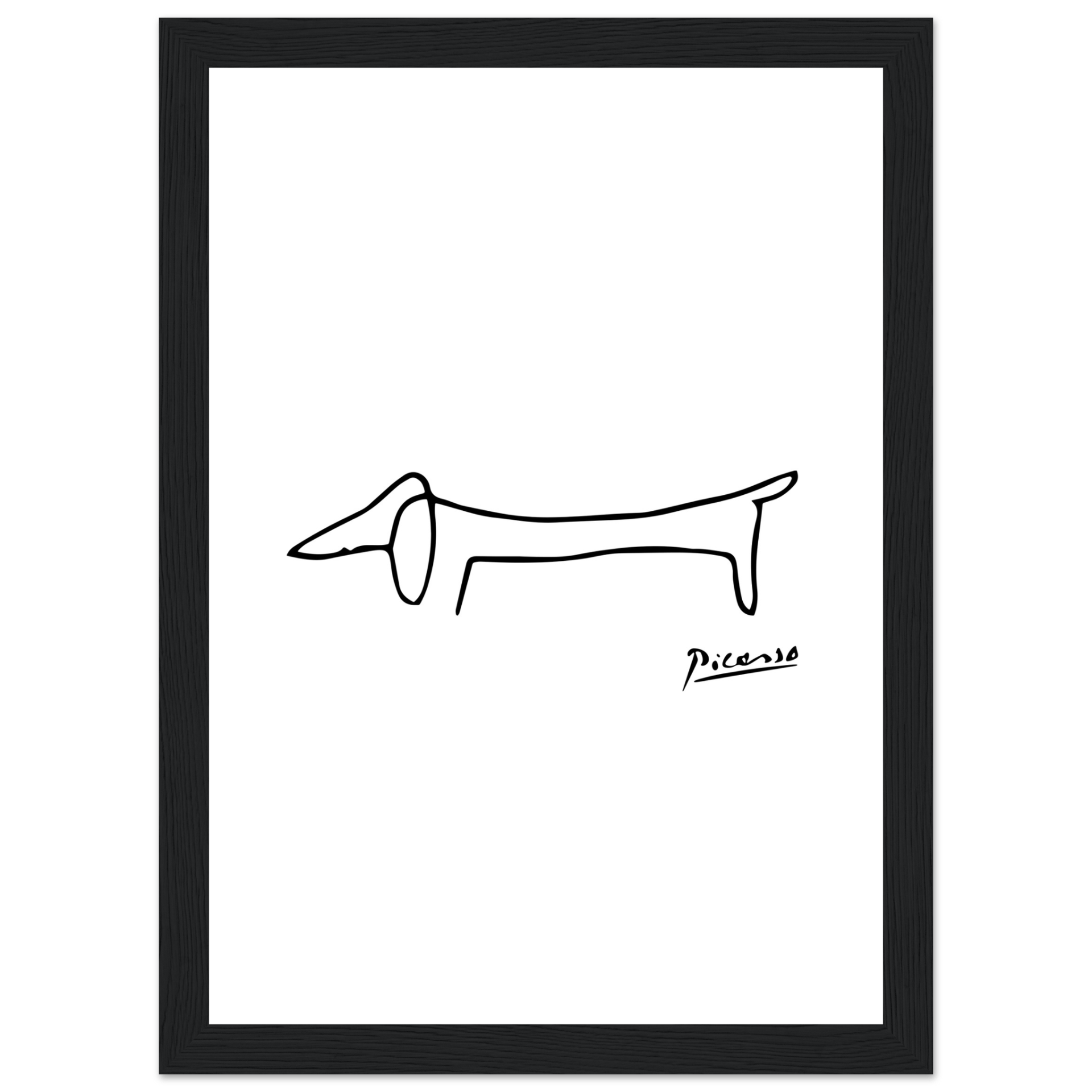 This amazing poster features a homage paid by Pablo Picasso to his self-assured little dachshund called Lump. While some old masters made a point of including the faces of fellow artists and patrons in the crowds portrayed in large oil paintings, the 'maestro' used to paint his little friend.