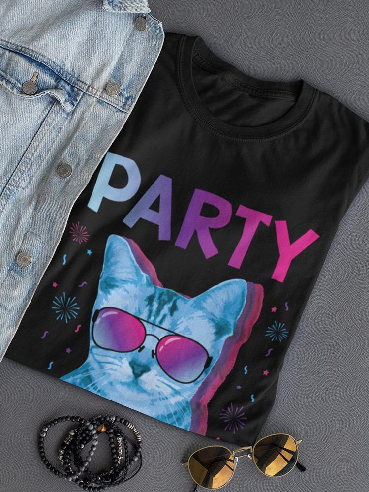 Party Animal Cat With Glasses Tee Women's -SmartPrintsInk Designs