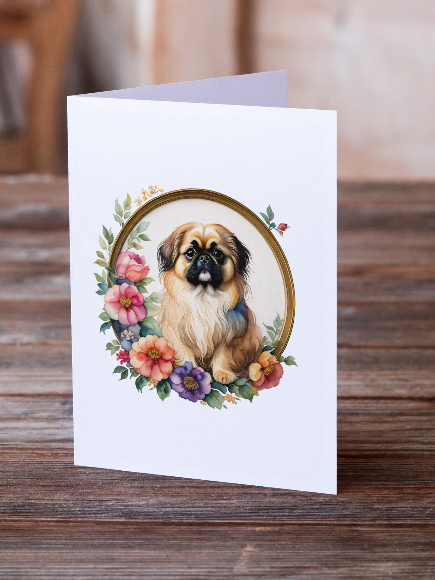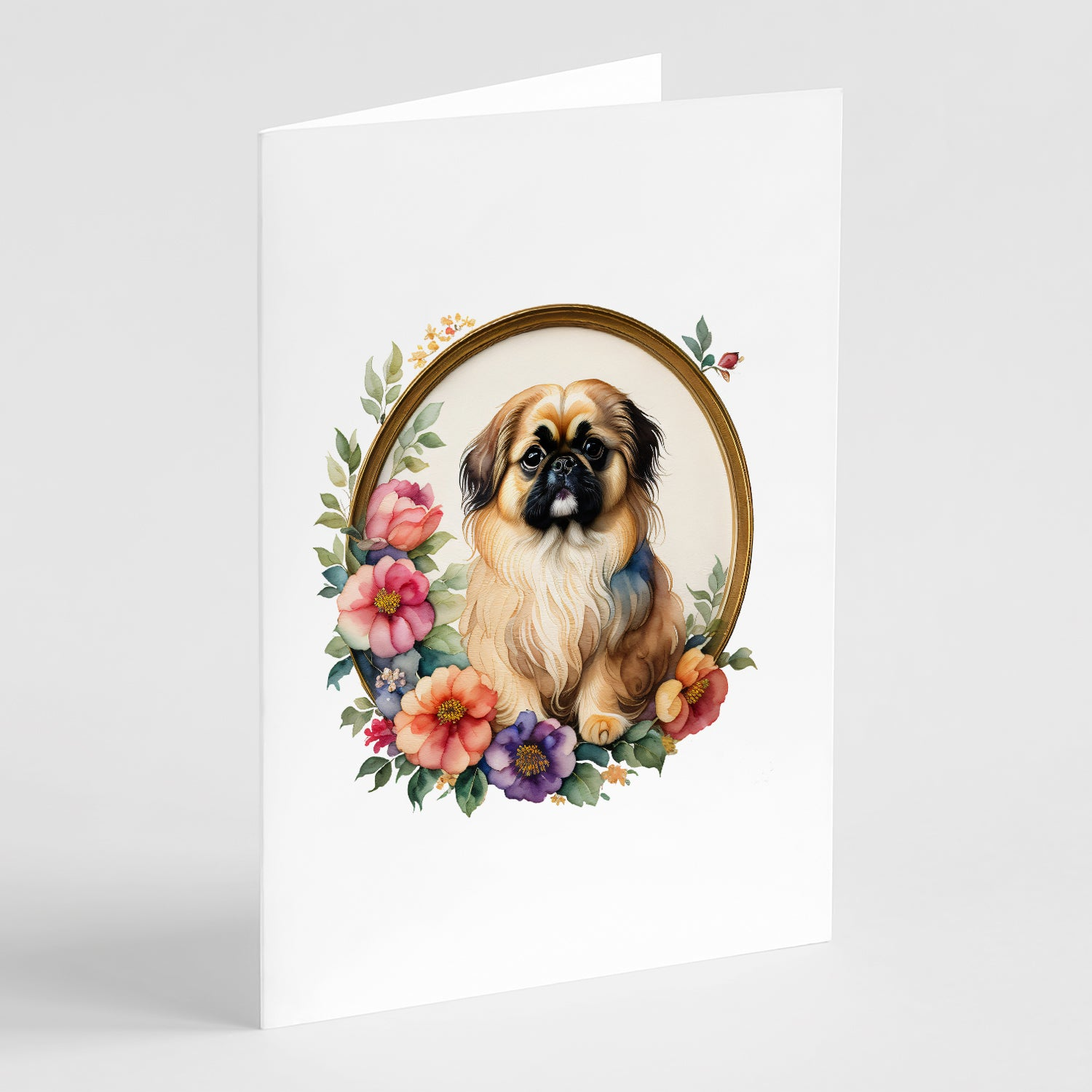 Greeting Cards Pack of 8 featuring breed specific Pekingese artwork. Celebrate special moments with Caroline's Treasures Printed Greeting Card Pack. This pack includes eight beautifully folded 5x7 cards, accompanied by eight matching white envelopes. With blank interiors, these cards provide ample space for your personalized messages and heartfelt holiday greetings. Each card features captivating full-color artwork, meticulously printed in our facility on high-quality 80 lb cover stock or 216 GSM. The super smooth finish of the white cards enhances the visual impact of the artwork, creating a truly stunning presentation. Designed by our talented in-house artists or licensed artists, the artwork on these cards showcases their creativity and attention to detail. From vibrant illustrations to captivating designs, each card tells its own unique story. Whether it's for birthdays, anniversaries, holidays, or any special occasion, Caroline's Treasures Greeting Card Pack is the perfect way to convey your heartfelt sentiments. Share joy, love, and warm wishes with these exquisite cards and make every moment unforgettable.
