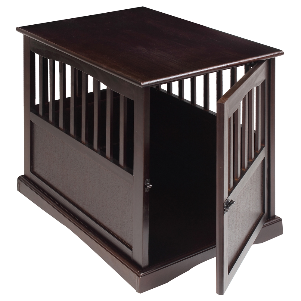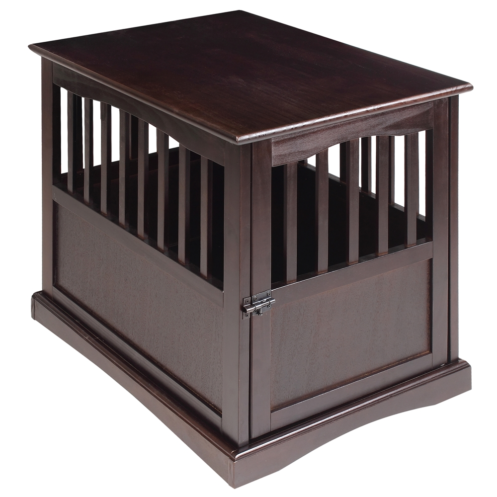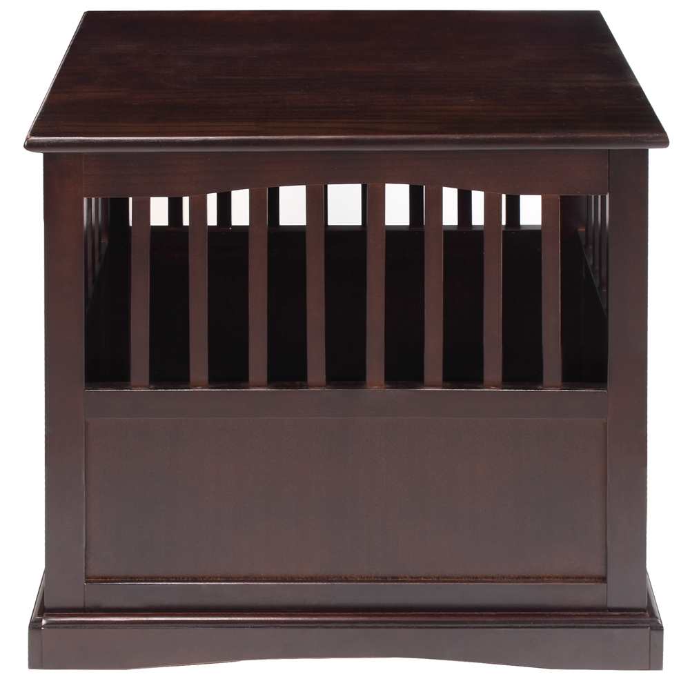 Our furniture dog crates provide a cozy, private spot for your dog to sleep and relax These wooden dog crates are constructed of solid wood. Beautiful design doubles as a fine piece of furniture. Dimensions: 24.5-Inch H by 27.5-Inch L by 20-Inch W Interior : 18.5”W x 26”D x 21”HExterior : 20”W x 27.5”D x 24”H