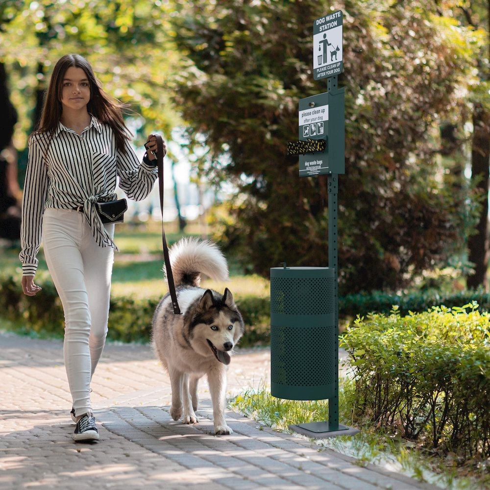 Daily walks are a great source of fun and exercise for owners and beloved pets alike, but it can lead to unplanned stops along your favorite walking routes when mother nature calls. Give pet owners everything they need to leave your neighborhood, dog park, or public walking trails as clean as they found them when you install this pet waste station. From leakproof rolls of pet waste bags to a hand sanitizer bottle, this set makes pickup and disposal of pet waste less of a chore Made from rust-resistant galvanized steel, this waste station is ideal for any outdoor areas where pet owners congregate. The glow in the dark signage is highly visible both day and night and in less than perfect weather. The locking bag dispenser holds up to 3 boxes of roll bags and boasts a rain guard to keep waste bags dry while the rounded trash can features a lid to keep waste where it belongs. Last but not least, the nifty hand sanitizer bottle is readily available after the pickup work is done so pet owners are free to continue on their way with no lingering germs or odors. Assembly is quick and easy with the include step-by-step instructions and cleanup is achieved with a damp cloth. For safety and stability, it is recommended that you anchor the pet waste station onto a cement base pad in the ground using the included expansion screws and an air hammer (not included). For your convenience, we have included 600 waste bags and 50 trash liners to get you started.