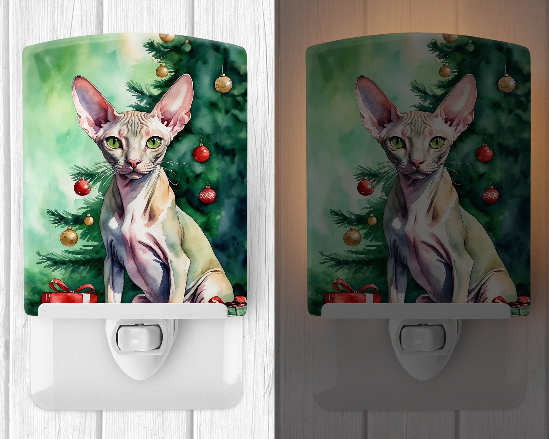 Ceramic Night Light featuring breed specific Peterbald artwork. Celebrate Christmas with this Christmas Night Light. Introduce a splash of artistic flair and subtle illumination to your space with the Decorative Ceramic Night Light from Caroline's Treasures. Perfect for any room, this night light seamlessly blends functionality with an aesthetic appeal, offering a stylish solution to brighten up dark corners of your home or office. Boasting a six-inch high by four-inch wide ceramic tile at the front, it showcases vivid, full-color artwork from distinguished artists, transforming a simple utility into a vibrant art piece. The artwork is securely encased in a robust metal holder, ensuring durability and longevity. Two screws are provided to firmly affix the tile into the holder. The holder extends three inches deep, housing an included bulb that emits a soft, welcoming glow. This product meets all safety standards, as evidenced by its UL approval. Proudly made in the United States from imported components, this Decorative Ceramic Night Light is not just a functional device; it's a statement piece that enhances the ambiance of your surroundings.