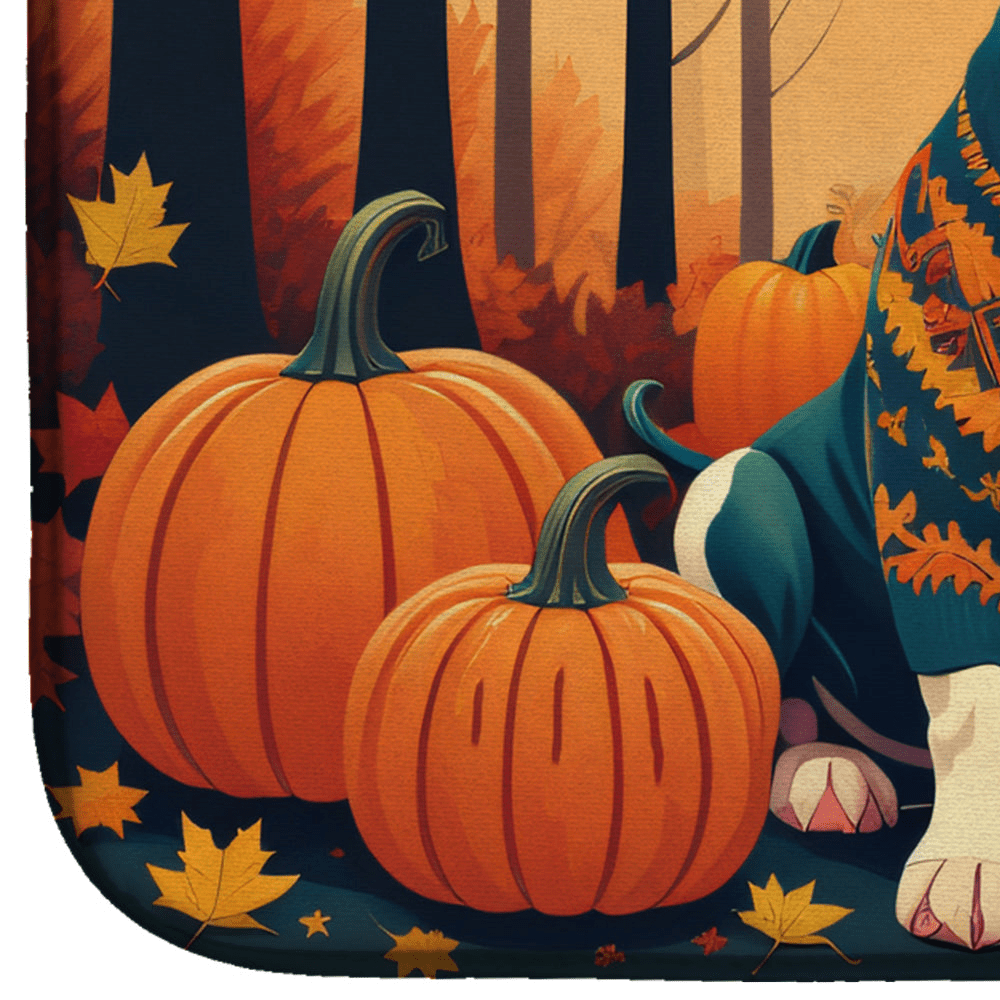 Pit Bull Terrier Fall Dish Drying Mat – Absorbent Kitchen Mat with Breed-Specific Pit Bull Artwork, 14 x 22 Inches, Non-Slip, Machine Washable, Printed in USA