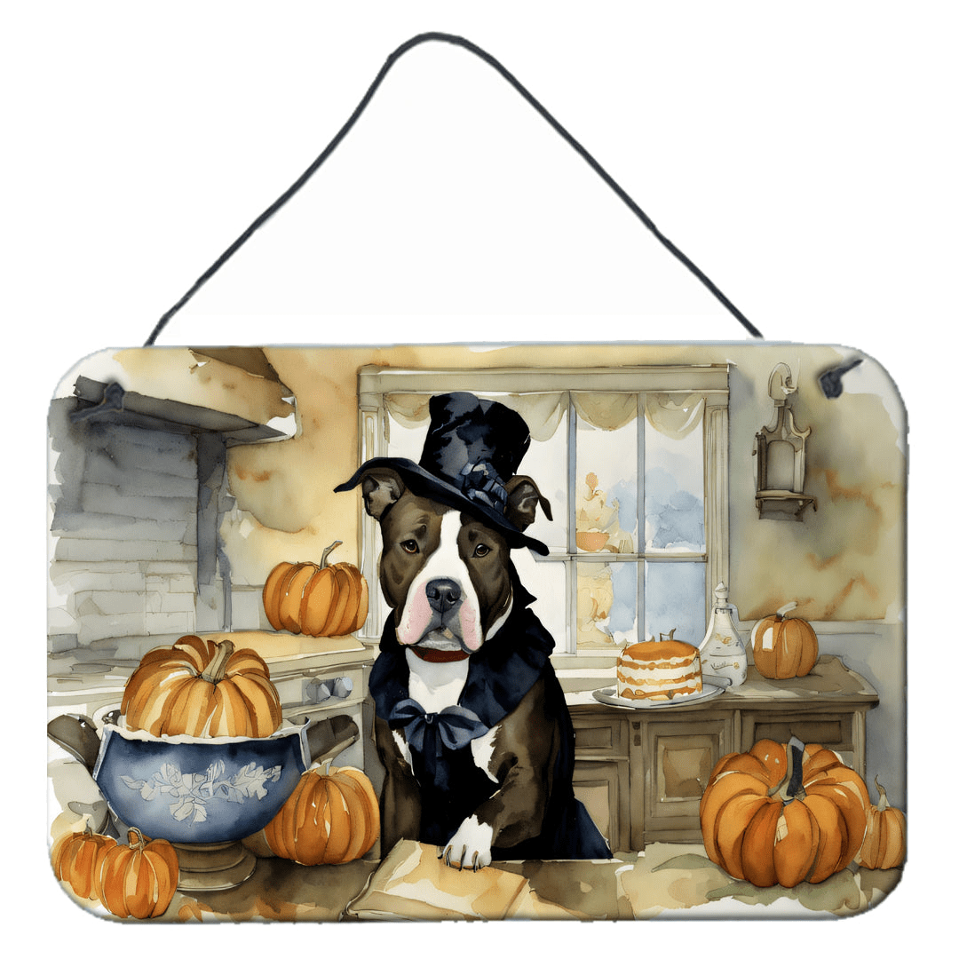 Pit Bull Terrier Fall Kitchen Pumpkins Wall or Door Hanging Prints
