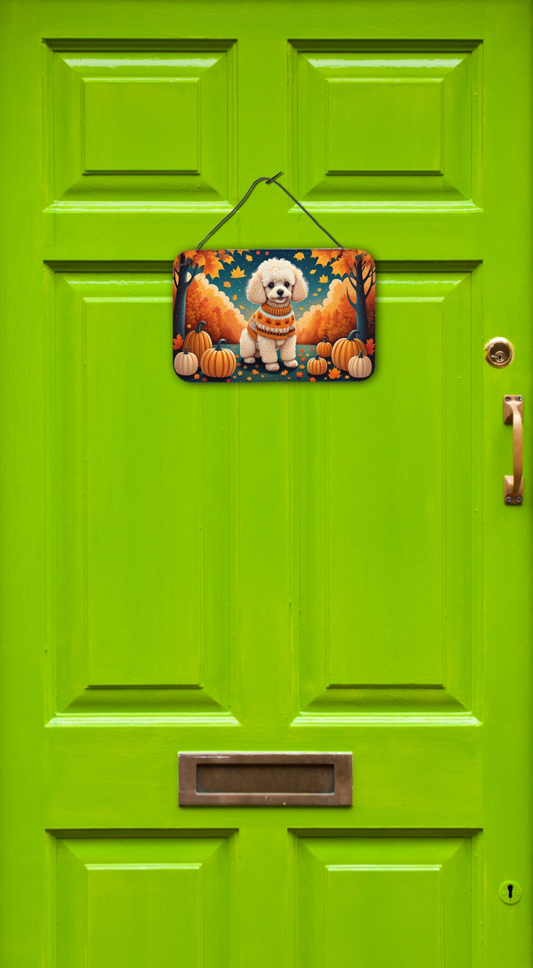 Wall or Door Hanging Prints featuring breed specific Poodle artwork. Add a splash of color and artistic flair to any indoor or outdoor space with our Aluminum Artwork Prints. These unique prints, featuring full-color, multicolor designs, provide a versatile decorative touch that can enhance a kitchen, bathroom, office, outdoor patio, or even the front door area. Each print measures 8 inches by 12 inches, making it the perfect size to catch the eye without overwhelming your space. Constructed with durability in mind, these prints can be placed outdoors and withstand direct sunlight for a significant amount of time before any fading begins. Designed for easy installation, each print features a black hanging rope and has a lightweight profile. This allows for quick hanging with just about any nail or screw. For safety and aesthetic appeal, the print's corners are gently rounded. The back of the print showcases a brushed silver color for an added touch of elegance. Rust and fade-resistant, these Aluminum Artwork Prints are not only beautiful but are also built to last. Elevate your space with these stunning prints, crafted with care and artistic passion.