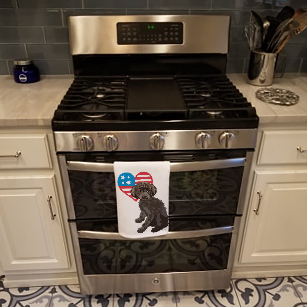 Kitchen Towel Set of 2 featuring breed specific Poodle artwork. This Kitchen Towel Set of 2 is from Caroline's Treasures collection Patriotic USA. Spruce up your kitchen decor with Caroline's Treasures Decorative White Kitchen Towel Set. This set of two dish towels showcases beautiful artwork from one of our talented artists, making them both practical and visually appealing. These towels are crafted from 100% cotton, offering excellent absorbency and durability, making them ideal for any kitchen task. Each white towel measures 19 inches by 28 inches, providing ample coverage for drying dishes or wiping up spills. The standout feature of these towels is the full-color artwork design printed on each one. They can serve as a vibrant accent in your kitchen, turning a functional item into a delightful piece of decor. When it comes to care, these towels are machine washable in cold water and can be dried on low heat. Remember to always use a pressing cloth when pressing the design, and avoid using bleach on the decorated towel. The Decorative White Kitchen Towel Set makes a great gift or a stylish addition to your own kitchen.