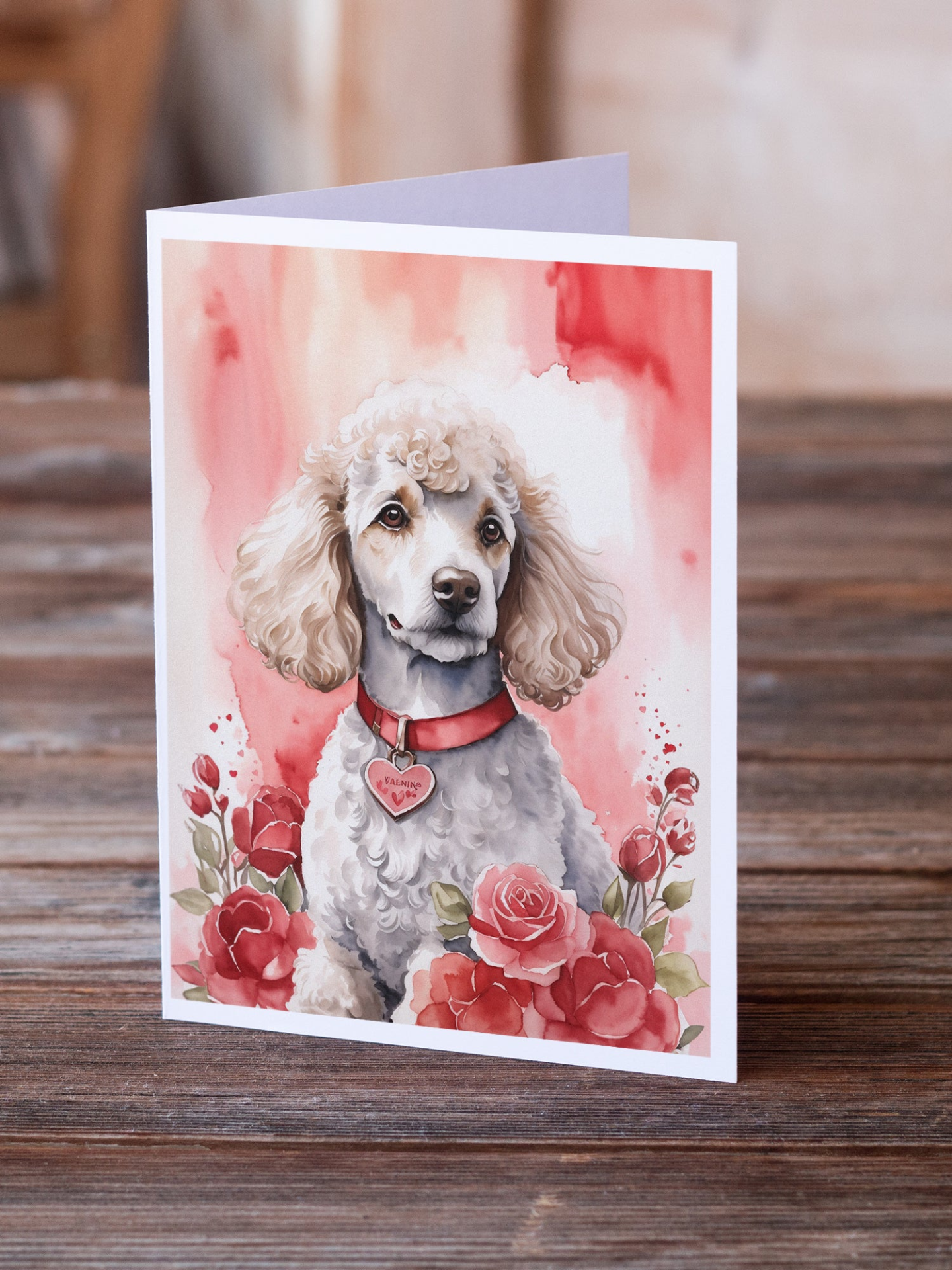 Greeting Cards Pack of 8 featuring breed specific Poodle artwork. Celebrate Valentine's Day with this Valentine's Day . Celebrate special moments with Caroline's Treasures Printed Greeting Card Pack. This pack includes eight beautifully folded 5x7 cards, accompanied by eight matching white envelopes. With blank interiors, these cards provide ample space for your personalized messages and heartfelt holiday greetings. Each card features captivating full-color artwork, meticulously printed in our facility on high-quality 80 lb cover stock or 216 GSM. The super smooth finish of the white cards enhances the visual impact of the artwork, creating a truly stunning presentation. Designed by our talented in-house artists or licensed artists, the artwork on these cards showcases their creativity and attention to detail. From vibrant illustrations to captivating designs, each card tells its own unique story. Whether it's for birthdays, anniversaries, holidays, or any special occasion, Caroline's Treasures Greeting Card Pack is the perfect way to convey your heartfelt sentiments. Share joy, love, and warm wishes with these exquisite cards and make every moment unforgettable.