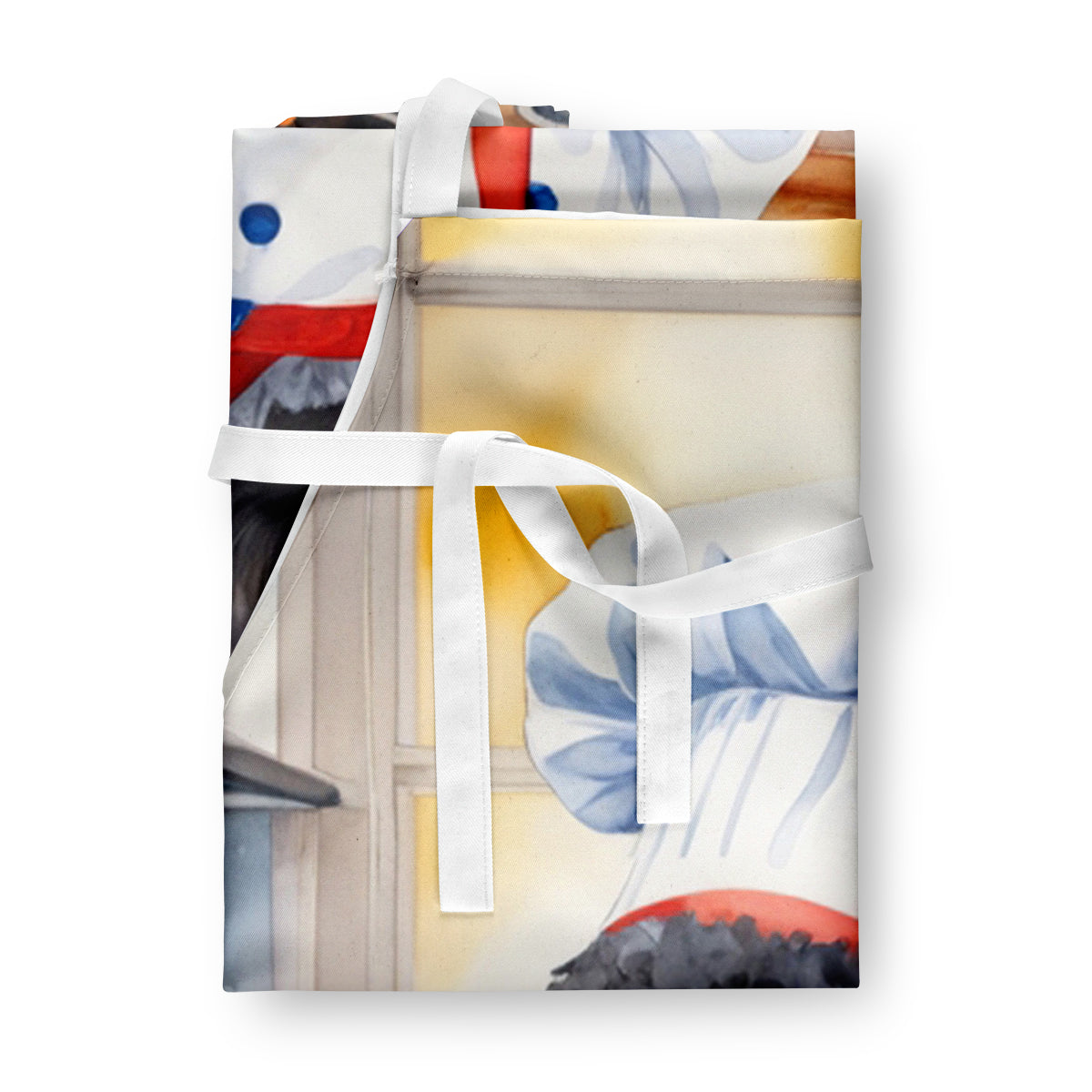 Apron featuring breed specific Portuguese Water Dog artwork. Elevate your cooking, baking, and grilling experiences with our versatile Kitchen or BBQ Apron. This Bib Style apron isn't just limited to culinary activities - it also serves as an excellent baking apron, artist apron, server apron, gardening apron, or even a dog grooming apron. The apron showcases vibrant full-color artwork contributed by one of our talented artists, bringing a dash of style to your daily tasks. With dimensions of approximately 27"W x 30"H, it provides ample coverage to protect your clothing from spills and splashes. Our apron is meticulously crafted from 100% Ultra Spun Polyester, known for its durability and lightweight nature. The apron comes with white tie straps, ensuring a comfortable and adjustable fit for all. It's a perfect choice for kitchen apron enthusiasts, whether you are a woman or a man. Designed for easy maintenance, this apron is fully machine washable. The quick-drying polyester material actively reduces staining, keeping your apron looking fresh and new for longer. Our beautifully designed apron isn't just a functional kitchen accessory - it's a fashion statement in the culinary world!