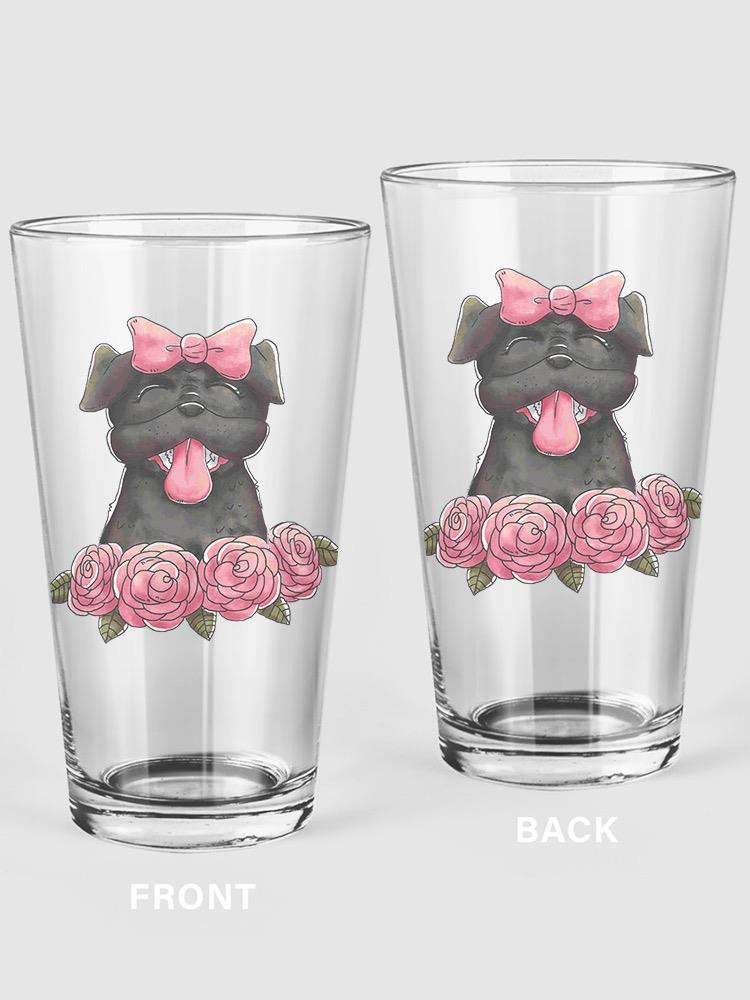 Pug Dog With Flowers Pint Glass -SPIdeals Designs - 16 oz / Object / White is backordered and will ship as soon as it is back in stock.