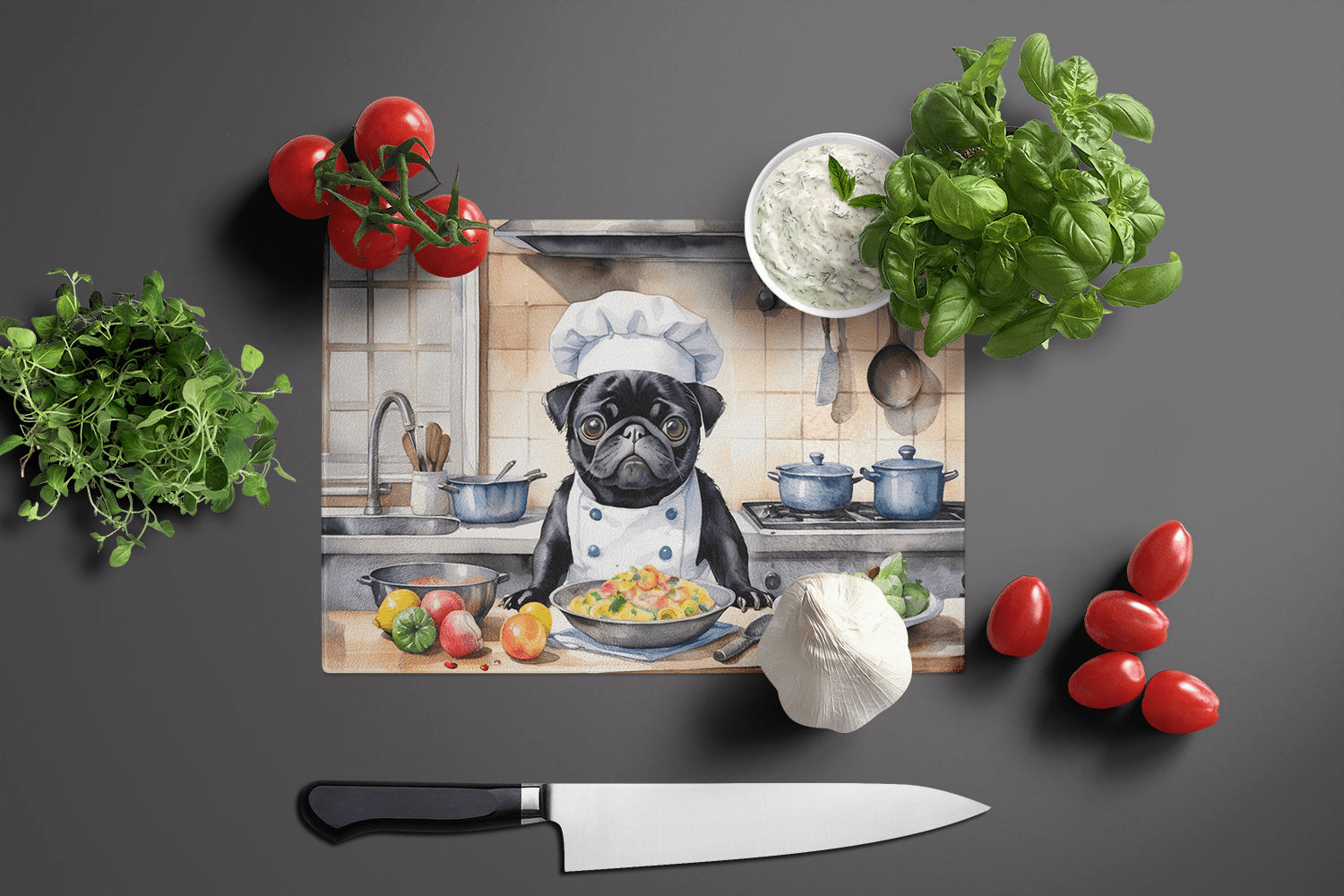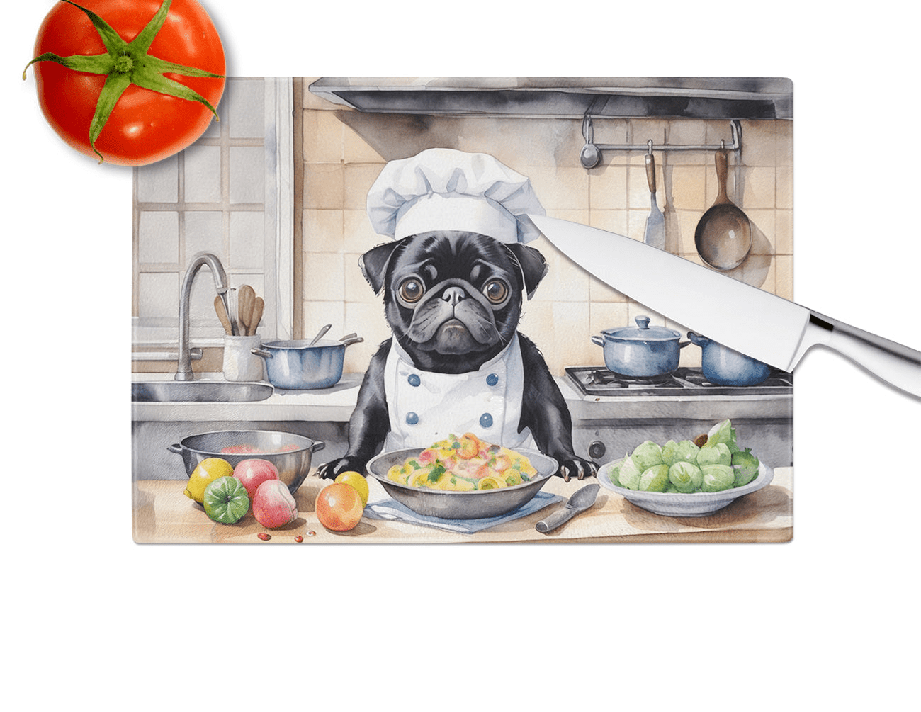 Pug The Chef Glass Cutting Board