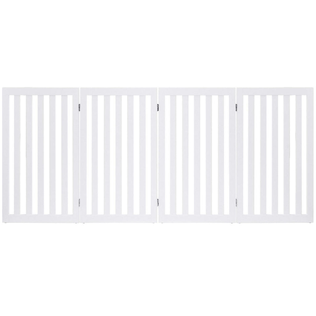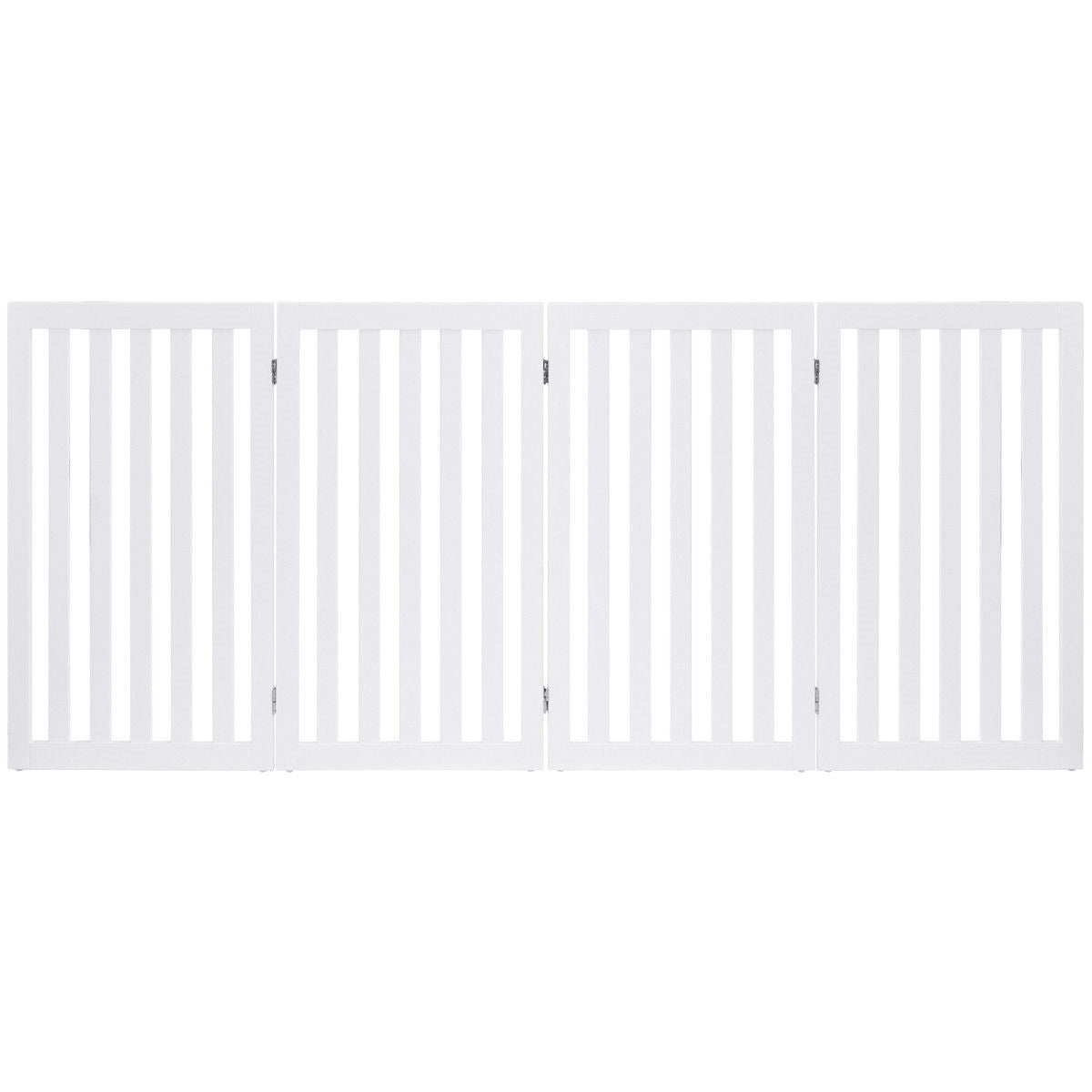 - Folding 4-Panel Dog Gate Pet Fence in White Wood Finish
