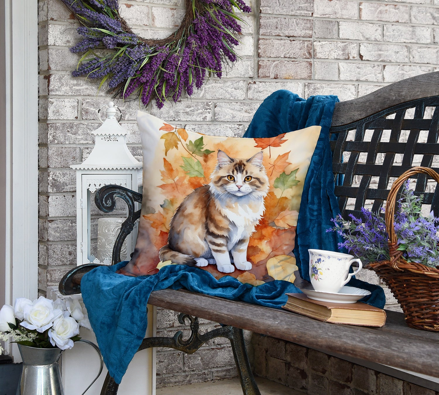 Ragamuffin Cat in Fall Leaves Throw Pillow
