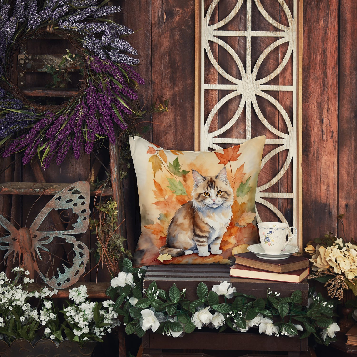 Throw Pillow featuring breed specific Ragamuffin artwork. Celebrate Halloween with this Halloween Pillow. Add a touch of vibrancy and comfort to your outdoor seating with Caroline's Treasures Fabric Decorative Pillow. Measuring approximately 14 inches by 14 inches, this outdoor pillow is crafted to elevate the appeal of your patio furniture, infusing it with vivid color and artistic flair. The pillow includes a 100% Polyester Fabric sham filled with a quality pillow form to provide superior comfort. Innovatively made from our brand new material, specifically woven for its water resistance, this pillow is designed for durability. The soft canvas fabric offers versatility in use, fit for your indoor couch or your outdoor patio, porch, or veranda. The fabric is dyed with colorfast dyes built for resilience against weather conditions, ensuring the pillow retains its beauty over time. Constructed by sewing three fabric pieces to create a sham, the polyester insert is then nestled inside to form the pillow, resulting in an overstuffed pillow that maintains its shape. Both the sham and the pillow insert are proudly made in the United States. As the pillows are handcrafted, there may be minor variations in size, further enhancing their unique charm. Experience comfort in style with Caroline's Treasures Fabric Decorative Pillow.